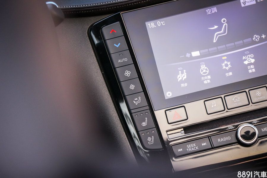 螢幕兩側條列冷氣快捷按鍵,風量、溫度、前座加熱通風等都能在此快速操作。