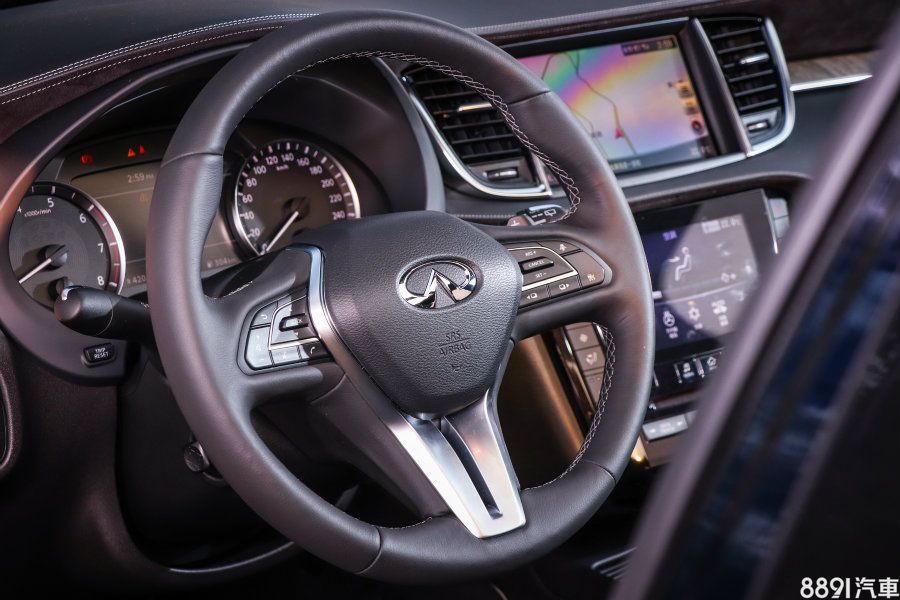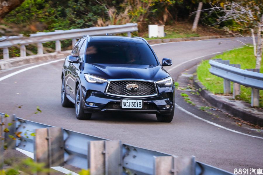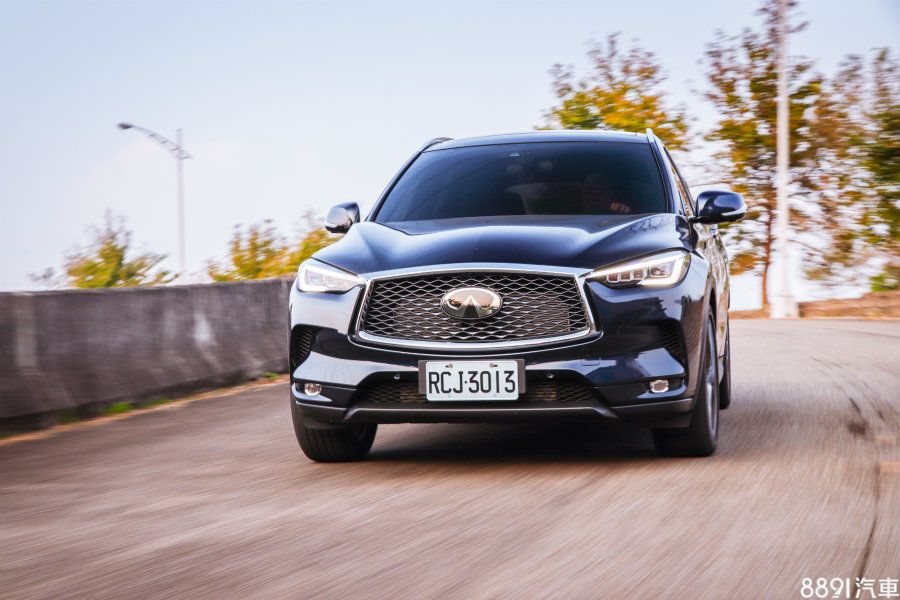 濃烈家族化設計雖然能夠一眼看出屬於Infiniti的品牌魅力,但同品牌之間的區別度卻也因此降低,車頭碩大廠徽採塑料表面、暗示著內部設有毫米波雷達,作為ICC智慧型定速與DCA車距控制輔助的判斷依據。