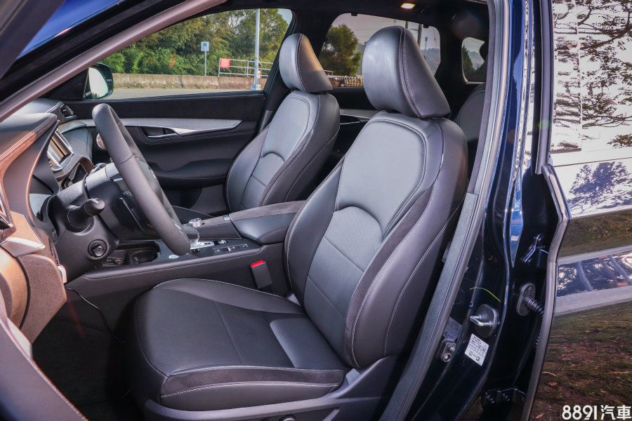 雙前座造型雖然簡潔,但旗艦款車型依然運用多樣材質營造質感,原廠特別強調有如零重力般的舒適乘坐感,實際置身其中對於臀部、腰部的支撐性令人印象深刻,激烈操駕的包覆性卻是還有提升空間。