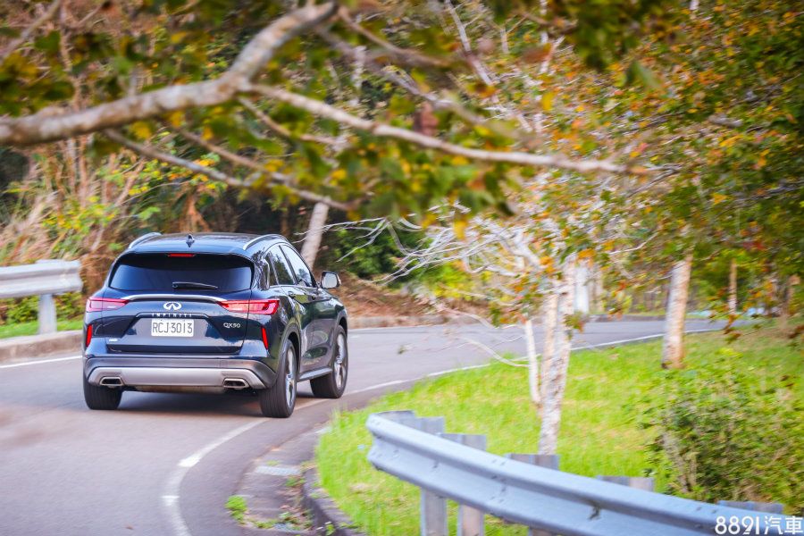 QX50導入家族化新月型D柱,大大減緩車身後段的厚重感,更與橫置尾燈相互銜接,使得整體線條更為流暢。