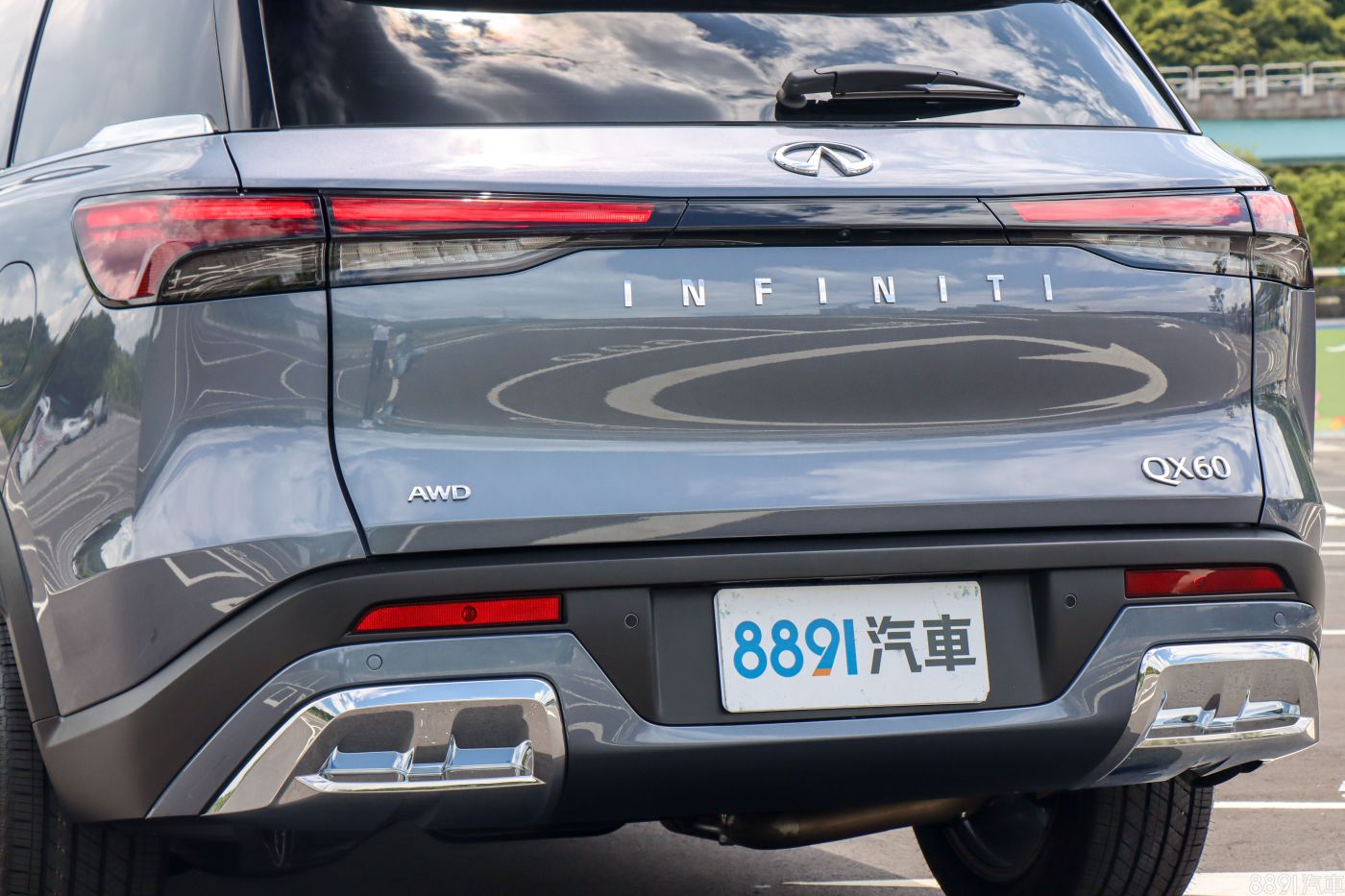 跟進QX50和QX55的設計,新QX60水箱罩放大不少,也加強了車頭氣勢,其格柵除了採亮黑塗裝,箏形的立體網格則受日本摺紙技藝所啟發,陽光下的光影折射效果也相當豐富。