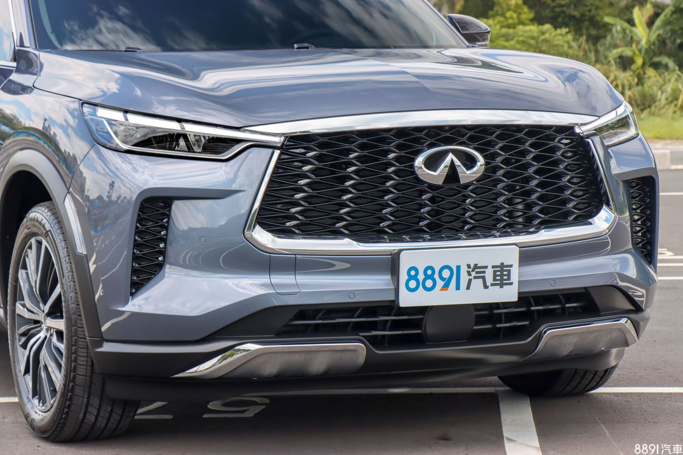 以往Infiniti外型較強調運動跑格,因此設計多偏圓潤並帶侵略感,也較傾向運用尖銳夾角來勾勒輪廓。但在新QX60上,整體車格方正許多,而且在富立體感的保桿造型搭配下,為這款大型七座SUV襯托出大器的視覺感。