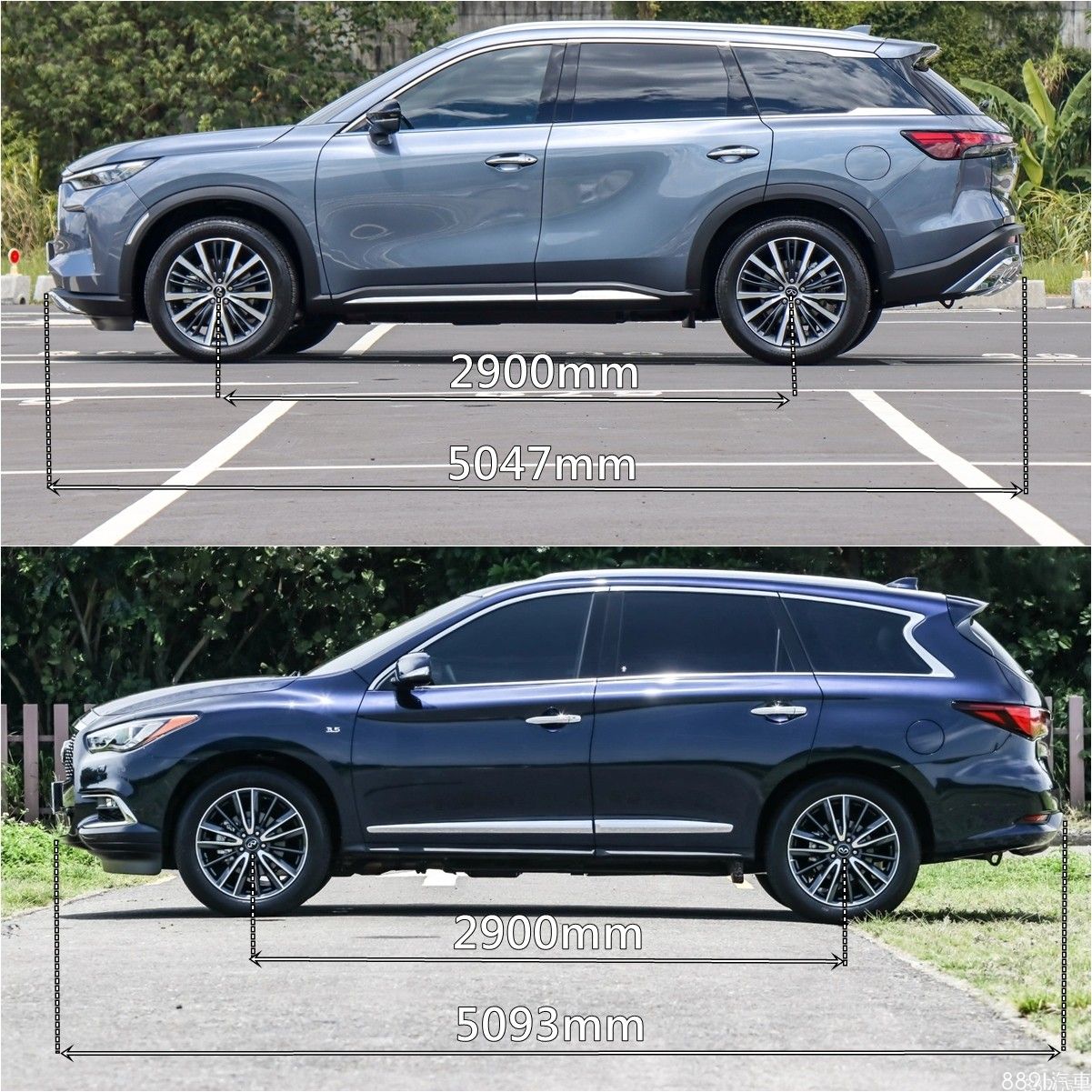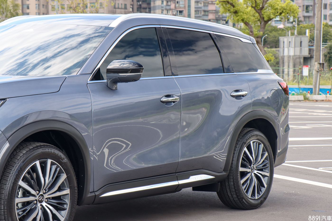 不同於多數車款大改後會放大車格的慣例,QX60其實縮減了大改款的車長和車高,保留相同的軸距設定,而車寬則略為增加。即便如此,在方正車格、懸浮車頂和窗框輪廓的搭配下,新QX60視覺上反而顯得較修長。