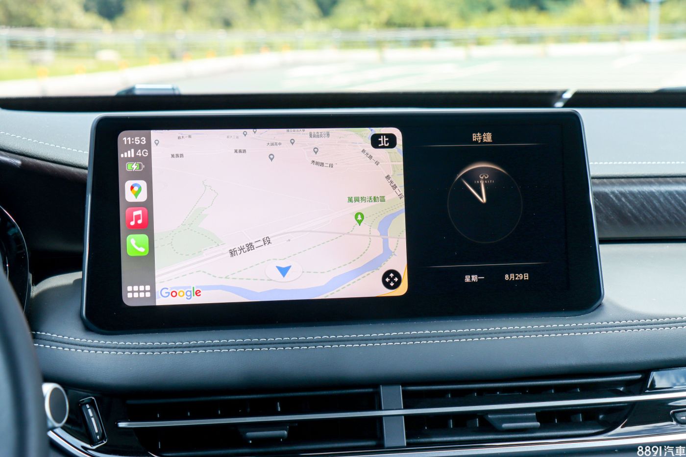 螢幕雖有12.3吋,但固定採分割畫面顯示,右側畫面並可切換時間、音源資訊和原廠導航指示。系統並具備Apple CarPlay和Android Auto,其中前者更支援無線連接。