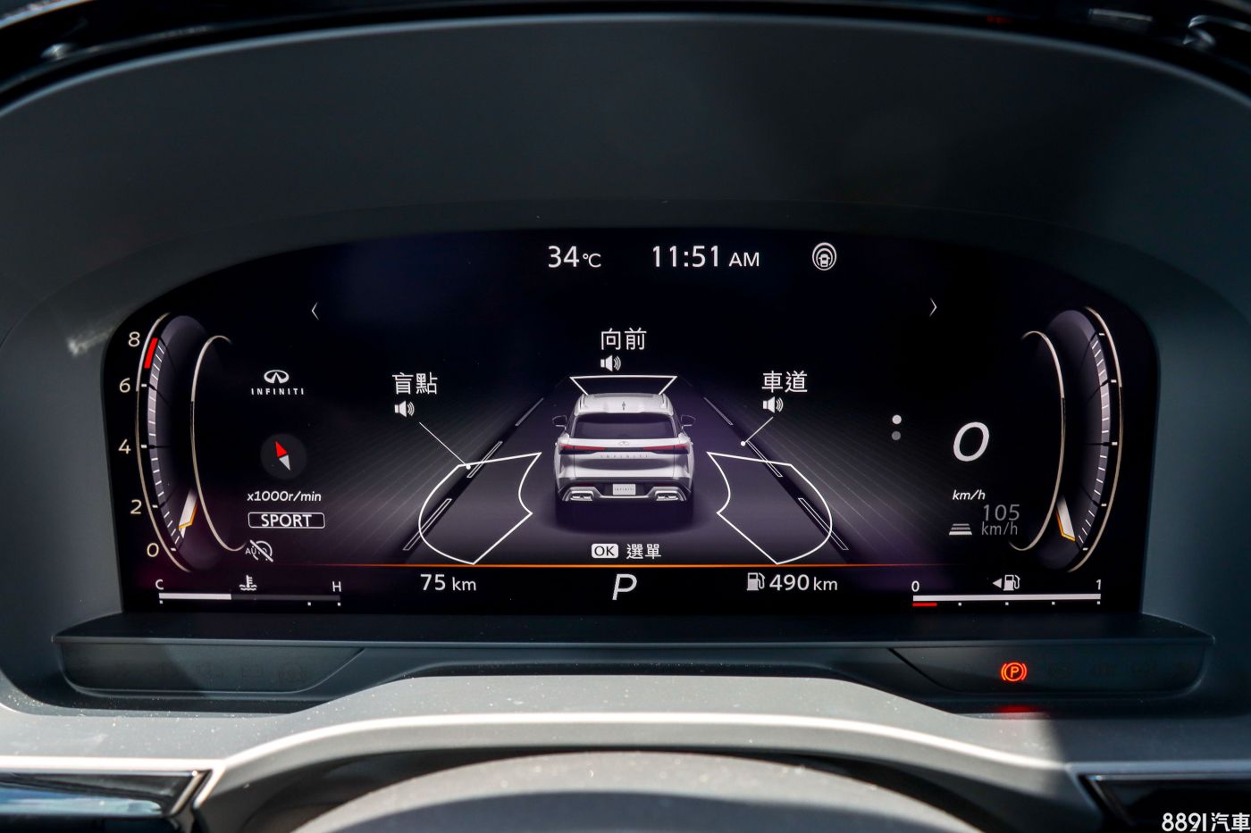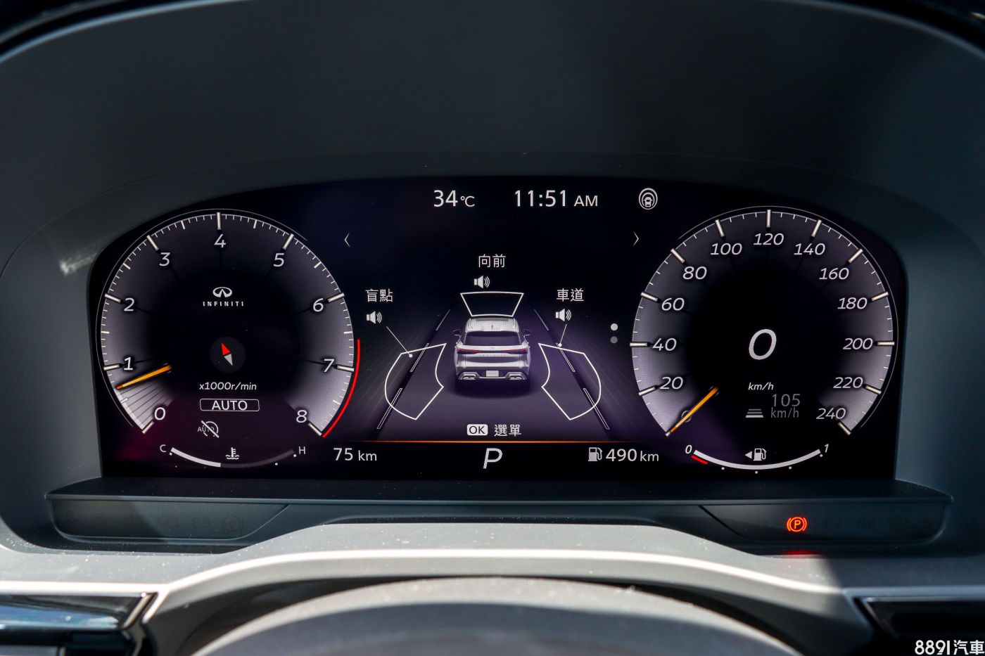雖說在同級中已不算罕見,不過QX60於大改款後導入12.3吋數位儀表,畫面除了傳統的雙環造型外,也可切換條狀顯示的介面風格。