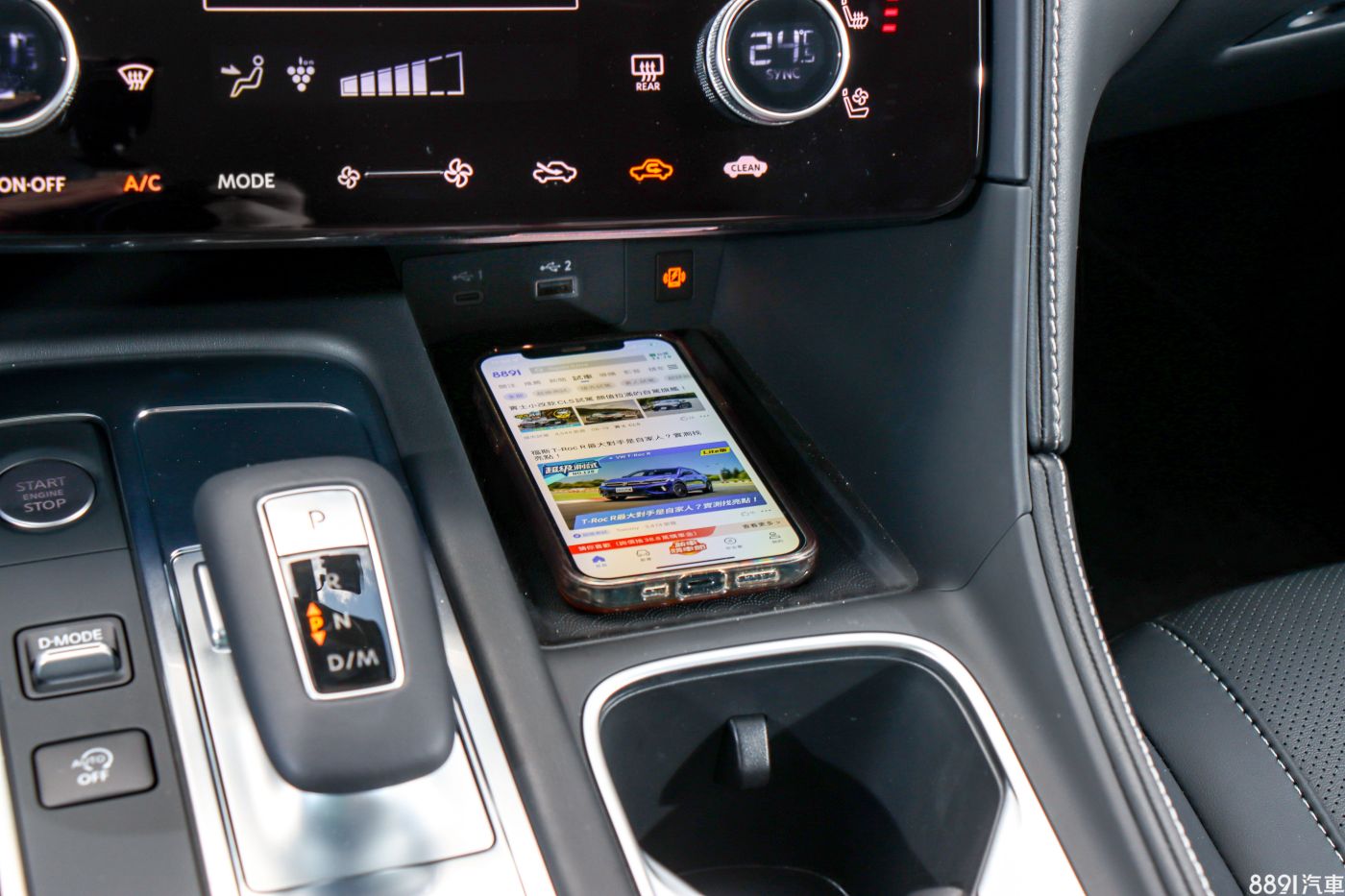 無線充電座也作頂規標配,尤其比起Android手機用戶,iPhone搭配可支援無線連結的Apple CarPlay,能實現「真無線」的用車體驗。