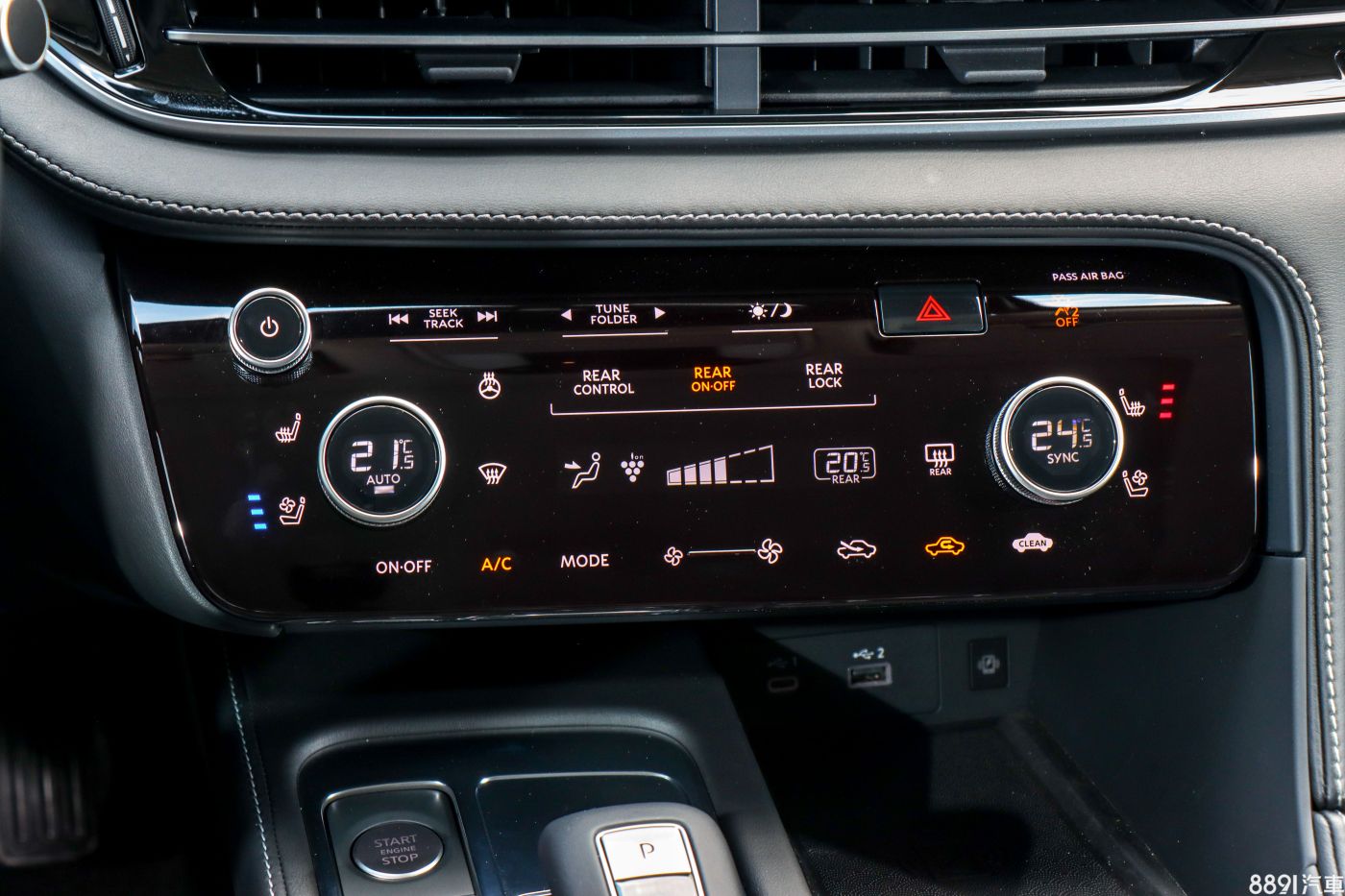 空調系統於大改款後換為觸控設計,具備觸控回饋提升按壓感,亮黑介面雖美觀但也容易有指紋殘留的狀況。不過,由於除了基本空調功能外,面板也整合座椅通風加熱開關和部分音響案件,讓介面稍嫌繁雜,需要花點時間熟悉。