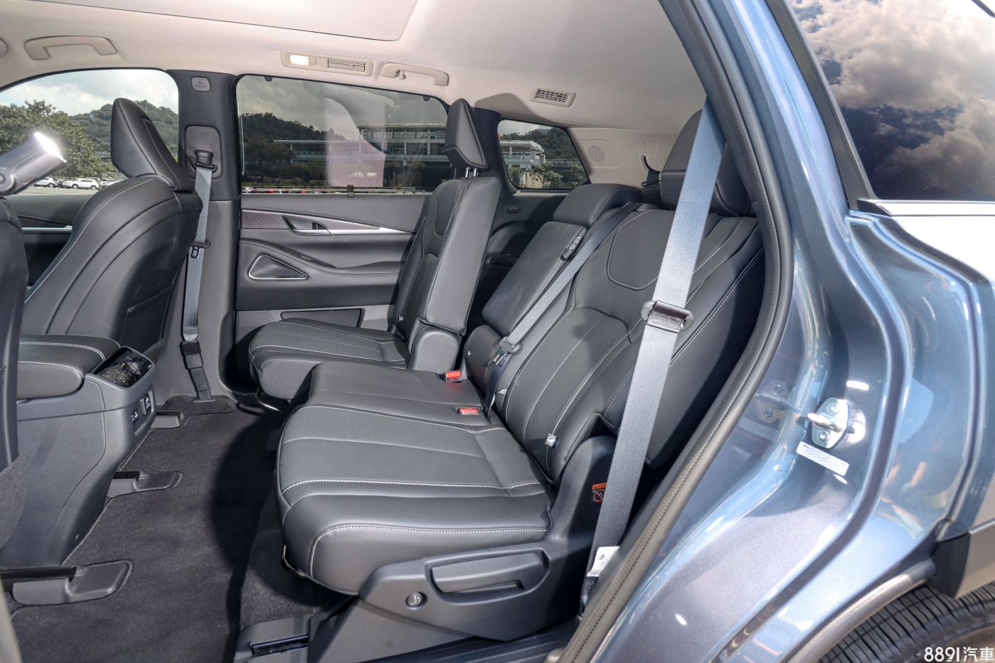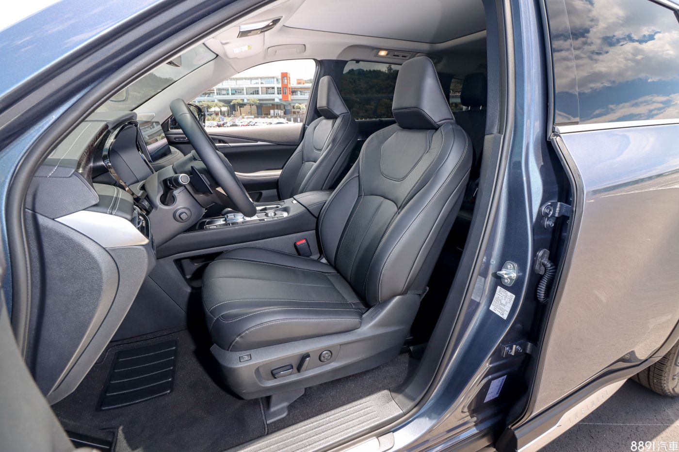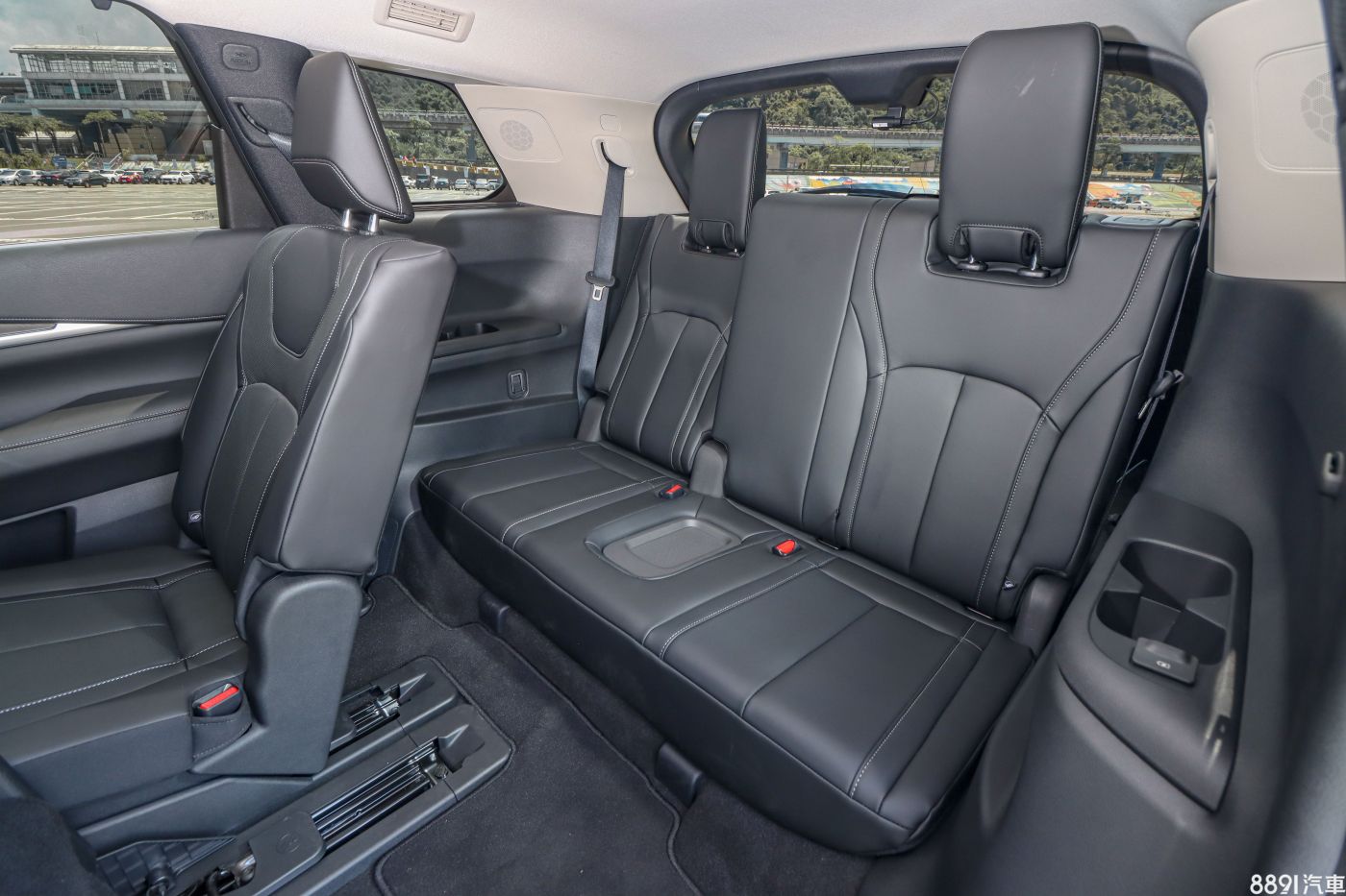 除非頂規車主另外加選6人座套件,否則QX60標配上皆採「2+3+2」七座設定。全車座椅皆採真皮包覆,前排座椅椅背開闊、椅墊夠長,支撐性和服貼感都不錯,相當舒適。