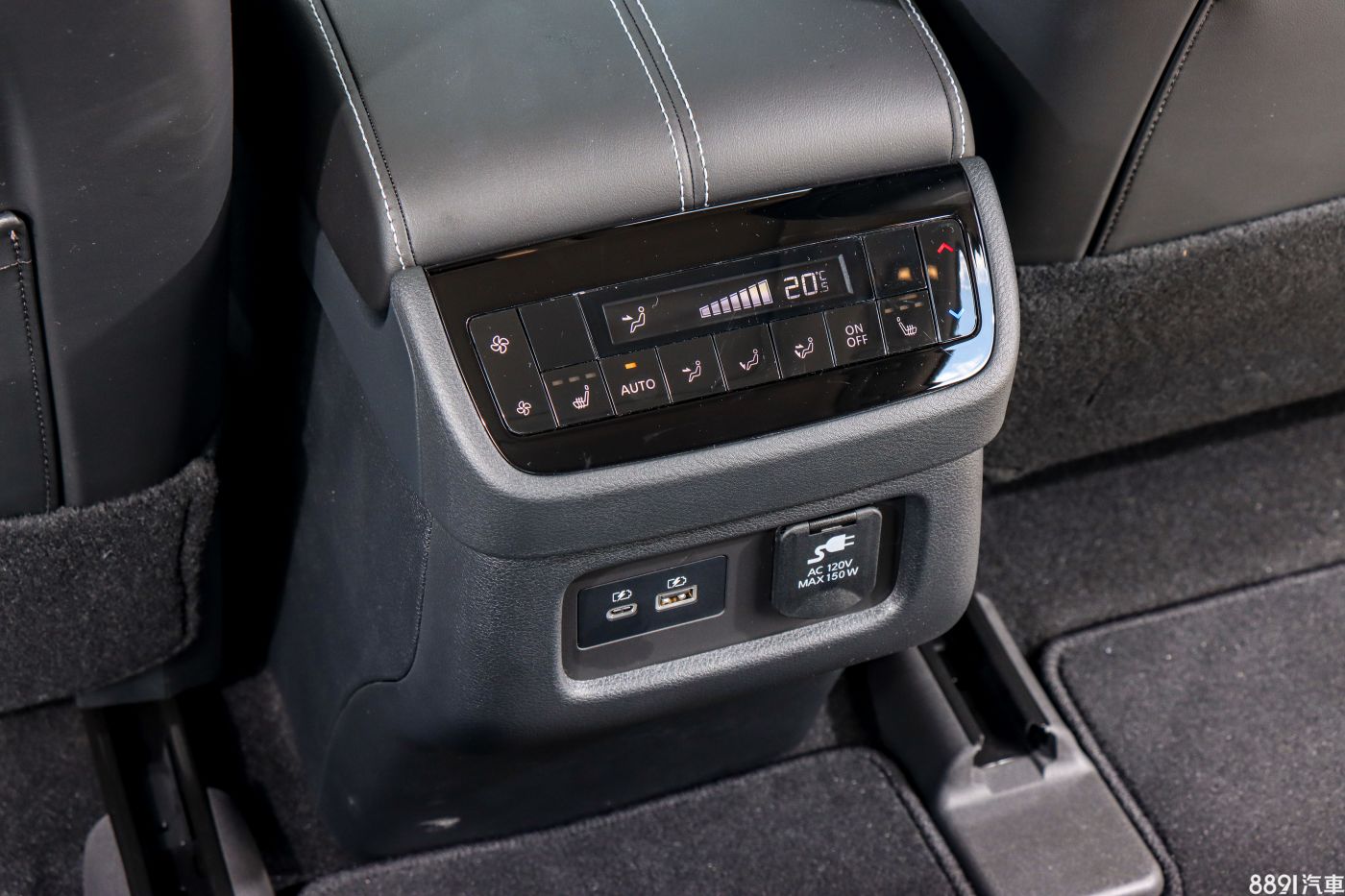 QX60配備三區恆溫空調,後排空調介面設置於前座中央扶手後方,但採實體按鍵,與中控台上的觸控空調面板不同,至第二排加熱座椅則為旗艦款才有的標準配備。