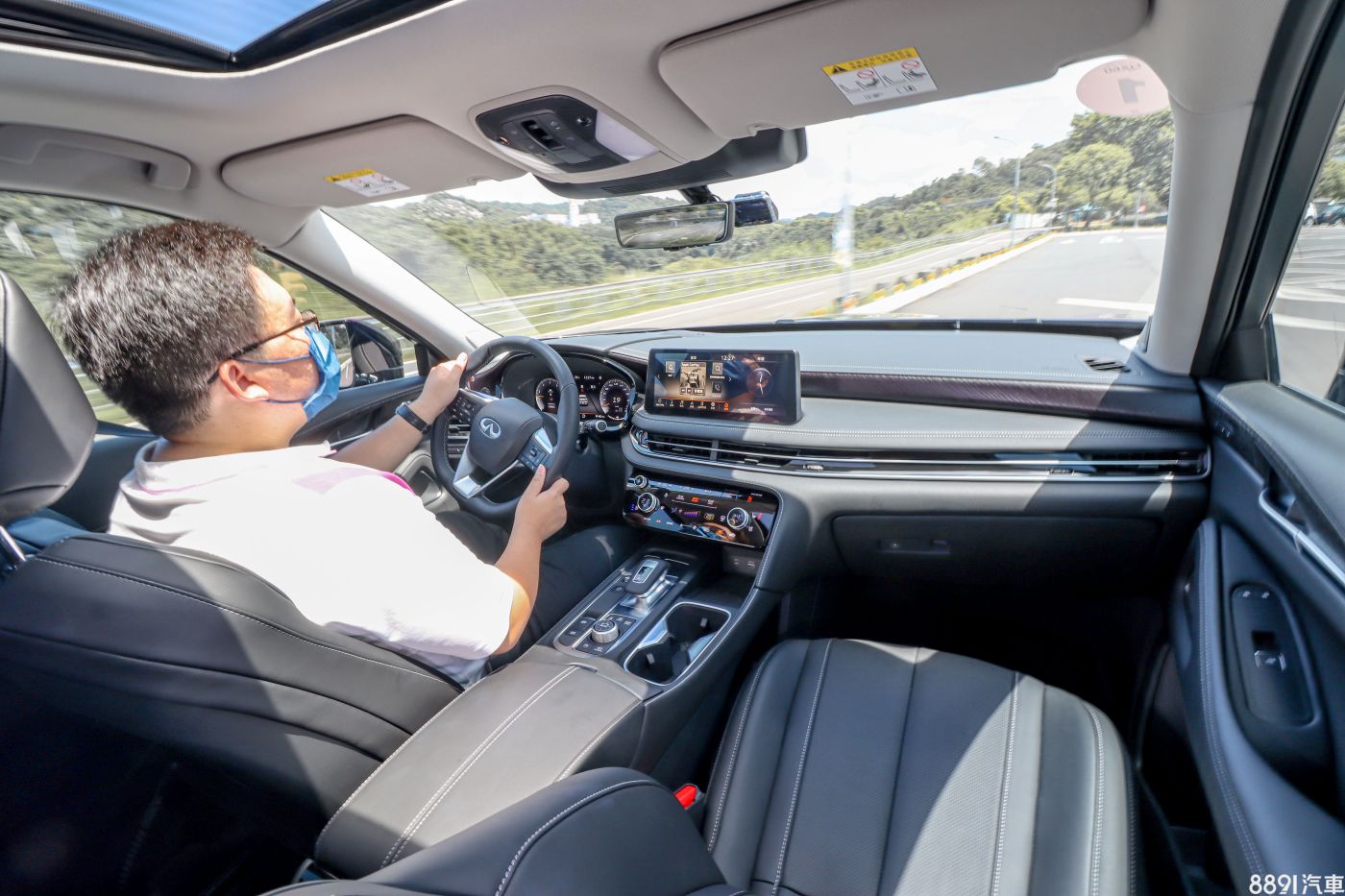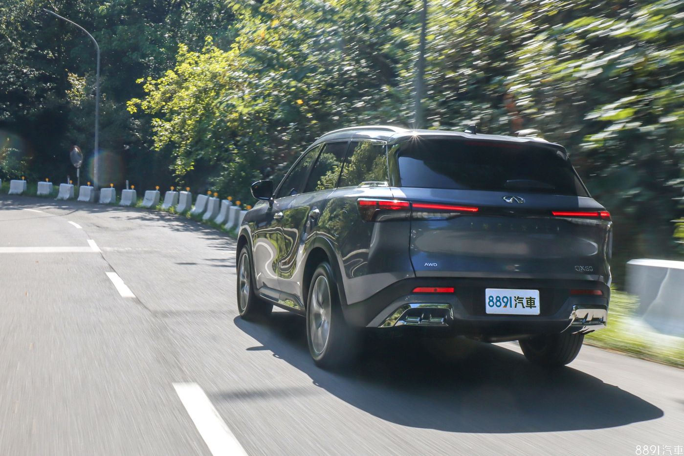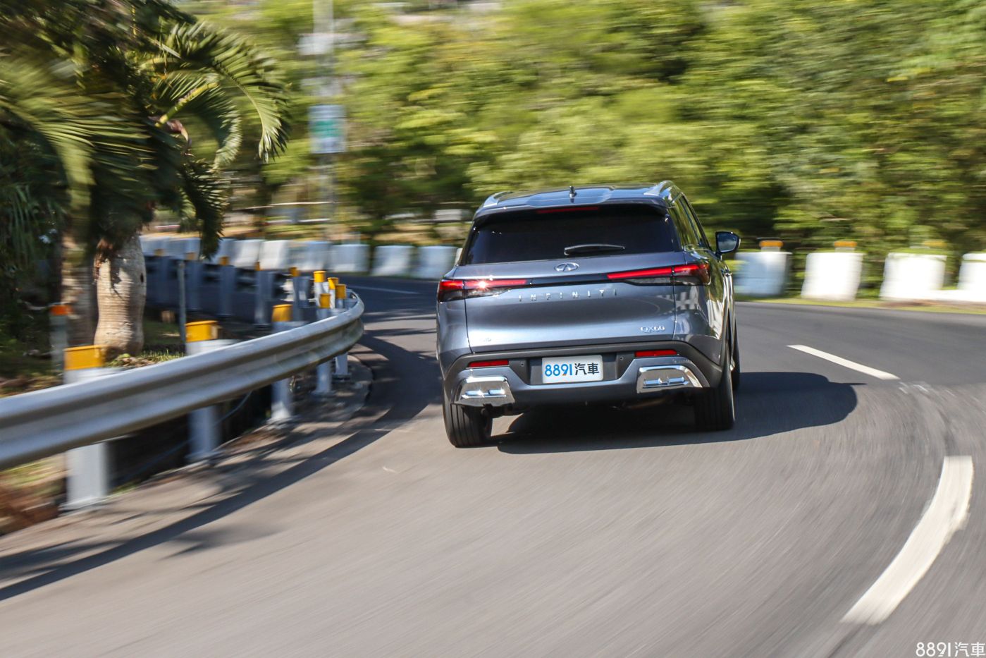 雖說採大排量設定,帳面數據也不差,但實際開起來,QX60尤其在低轉速域表現溫和柔順,起步時即便大腳油門一敗,僅感到QX60默默推進並慢慢提速,調性平穩沒什麼驚豔感。