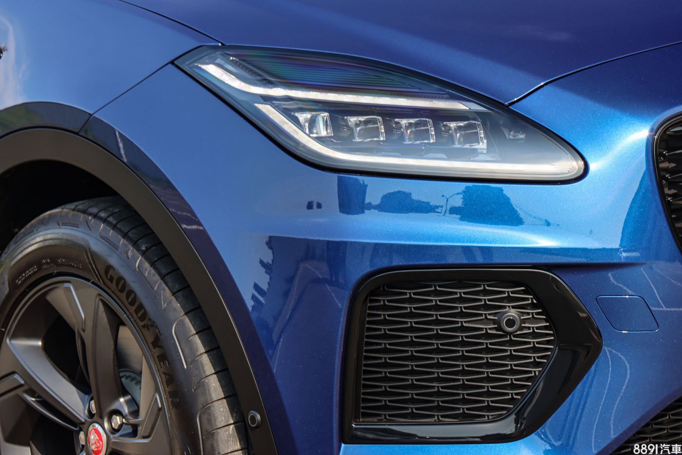 小改款E-Pace確實就是「小針美容」,不說還真有點看不出來改在哪。車頭望去僅針對水箱罩內部換上新式網狀格柵,內部點綴如同「繁星」的飾條,甫以左右氣壩的鍍鉻外框,精緻度明顯提升,兩車型皆標配R-Dynamic套件,梯形的下氣壩,搭配兩側大型進氣口,動感氛圍營造得有聲有色。