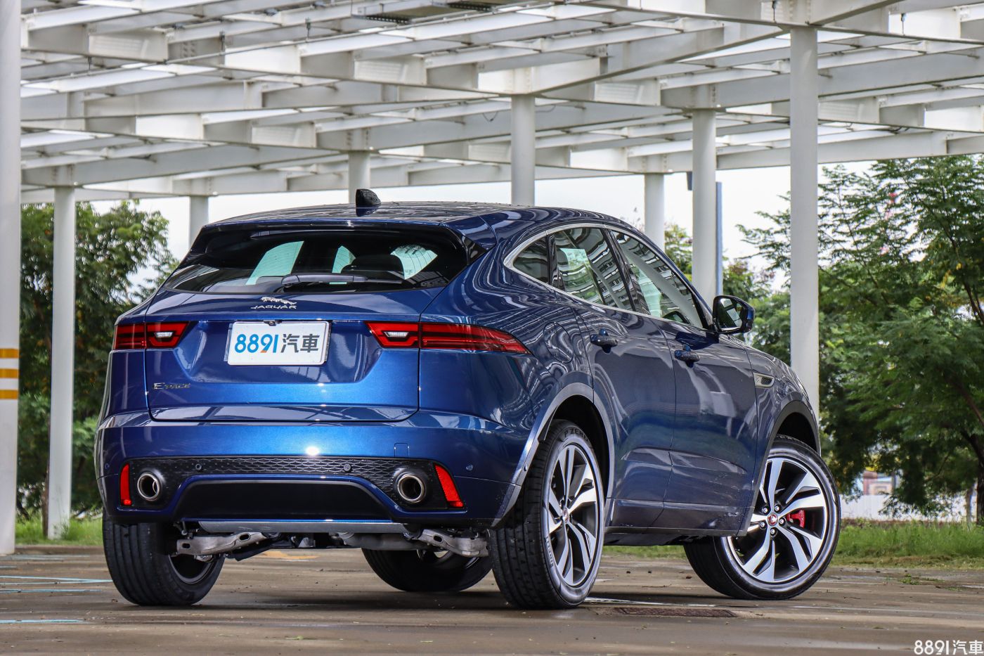 車尾幾乎沒有動刀,依舊維持C柱後短截、車尾厚實的「豐臀」形象,而這也是筆者認為E-Pace最迷人的角度。R-Dynamic套件在車尾的著墨更加用力,蜂巢狀的下保桿、後擾流,搭配左右各一雙出尾管,視覺上增色不少。