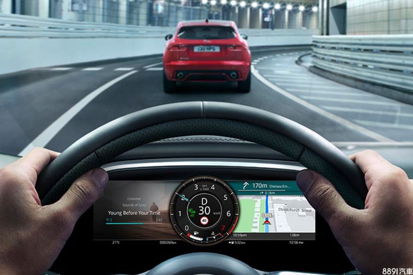 小改款E-Pace國內標配傳統儀錶,試駕車另選12.3吋全數位儀錶,提供單環錶、雙環錶或全螢幕地圖等多種顯示風格,內容資訊也可按照駕駛喜好切換,功能算是齊全,依照所選擇的駕駛模式,而有不同的色彩呈現。這項配備在舊款原為標配,而新款改為選配,但實際上是22年式不開放加選,主要是考量「全球晶片短缺」,若是納入配備清單中,交車期可能會過長,因此才會出此決策。