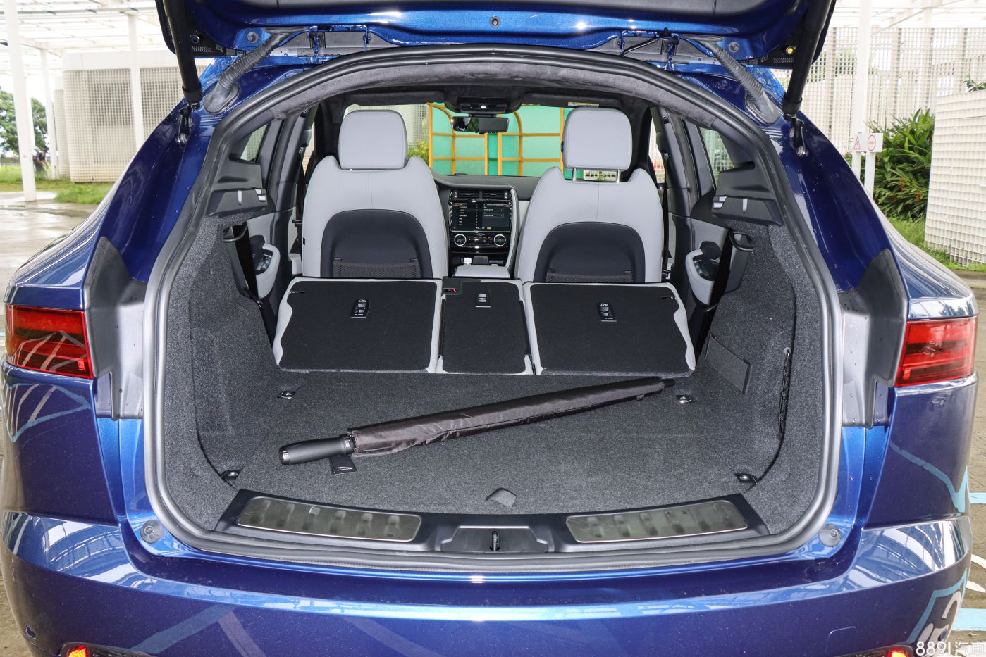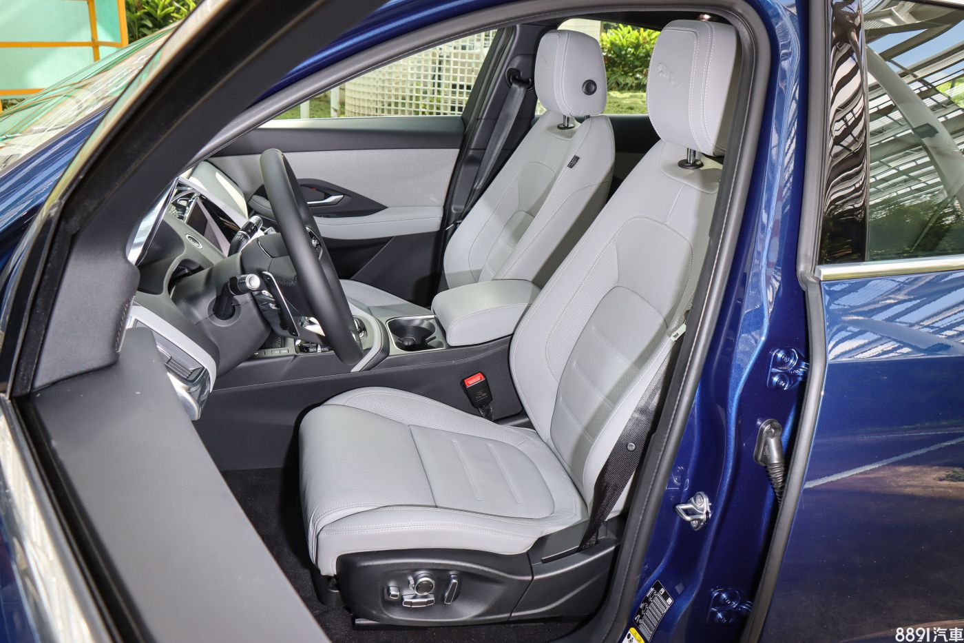 雖然E-Pace僅是中型房車Size,外表看起來也有些「緊湊」,但實際進入後座,膝部空間仍有不錯的伸展空間,搭配寬大的椅面、理想的椅背角度等,坐姿也算舒適無壓力。