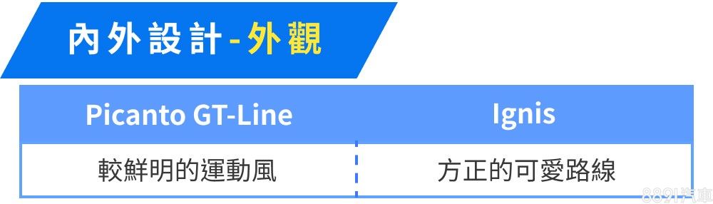 Ignis車身方正、大型輪拱線條卻又略帶圓潤,小改款後在前後保桿導入銀色下護板設計增添些許跨界風格,相較Picanto的運動風格,Ignis則多了幾分個性元素,配合小巧車身煞是可愛。燈組設計上,也大量採用LED光源,尤其大燈也是LED照明,大勝Picanto的鹵素設計!