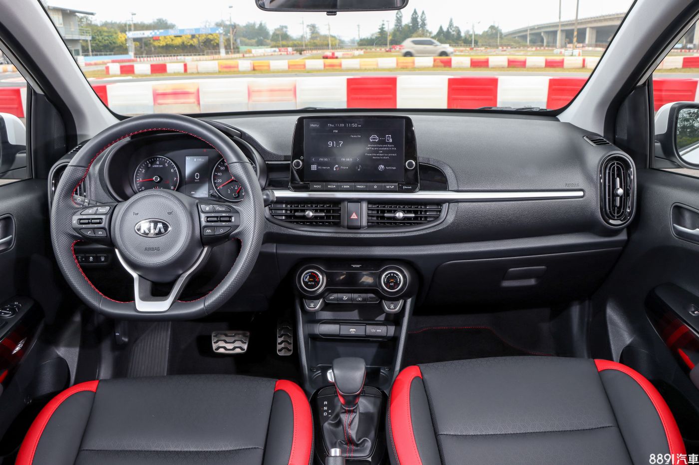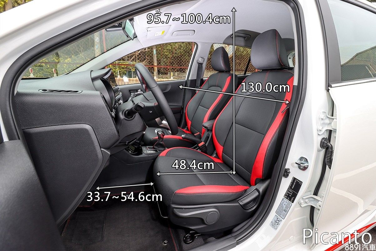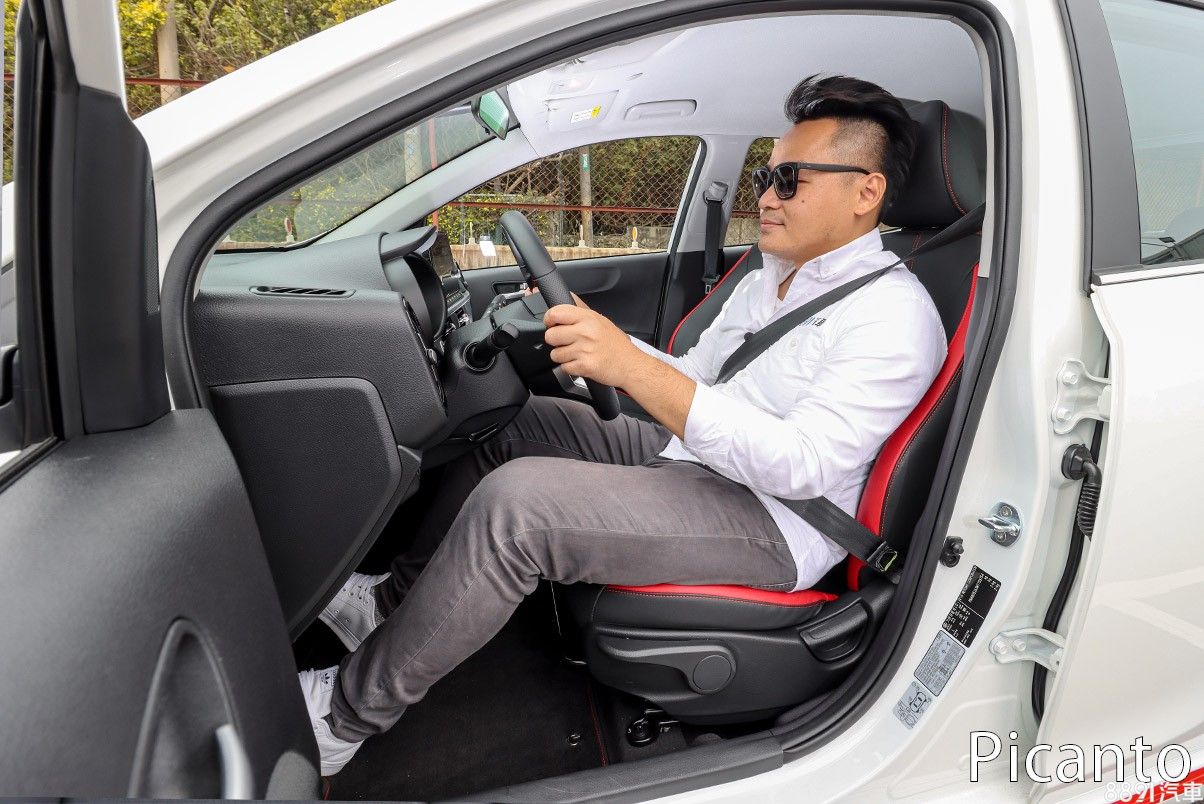 Picanto椅面造型立體,並採用皮質包覆,GT-Line獨有紅、黑雙色搭配,讓車內看起來活潑動感。實際乘坐包覆性不錯,腰部、大腿兩側都可獲得支撐,在激烈操駕時比對手多點安全感。