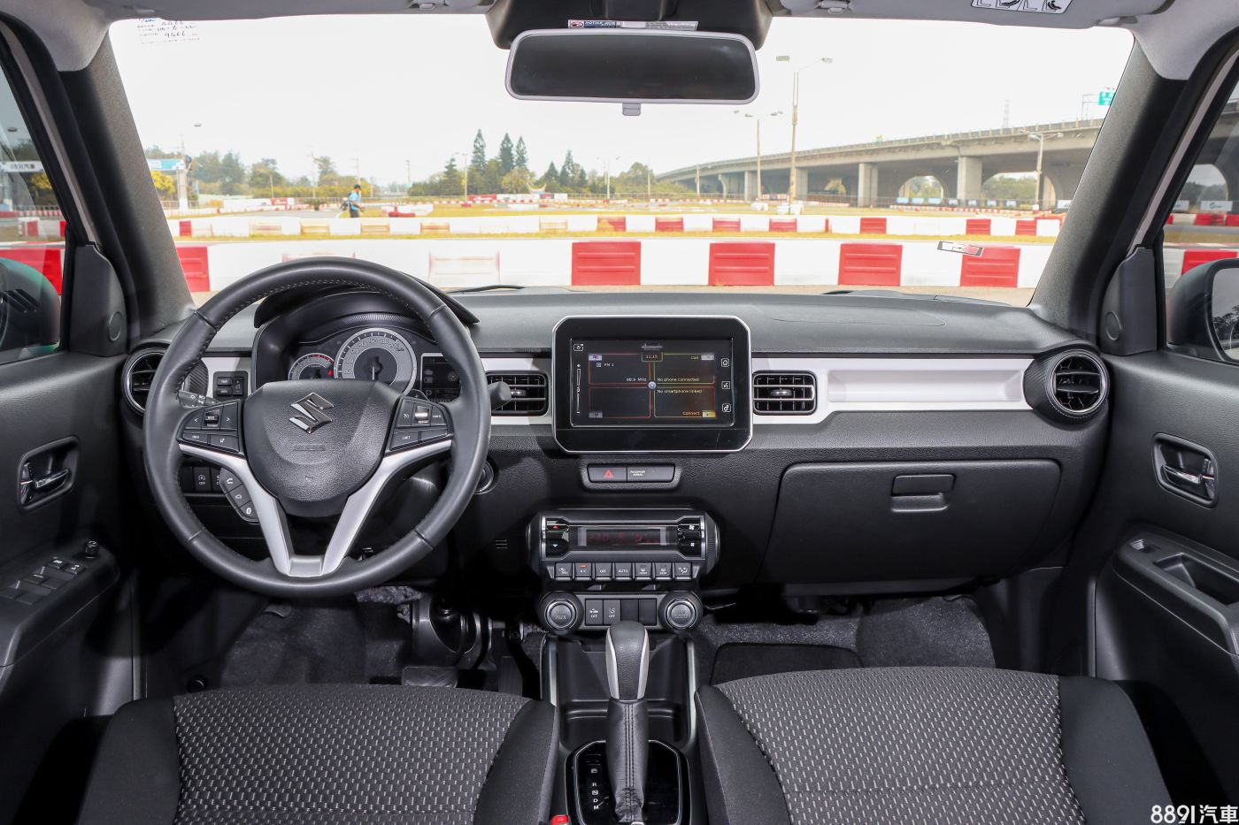 Ignis內裝則相對活潑一些,黑白配色、懸浮式觸控螢幕,下方冷氣面板更以圓筒狀呈現,有如積木般構成儀錶檯造型,設計感強烈。內裝材質則同樣以硬塑料居多,但同樣有皮質包覆方向盤,整體質感與Picanto在伯仲之間。