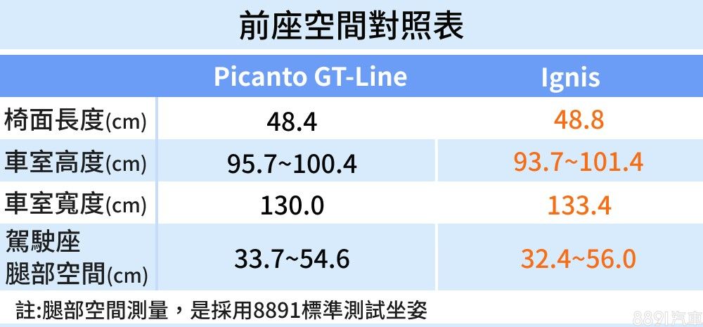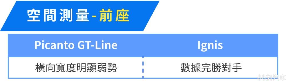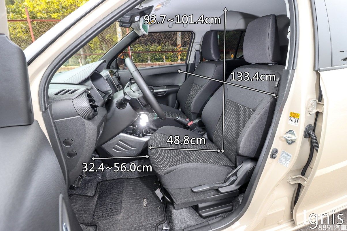 Ignis除了寬度多2.6cm比較有感外,其它各項數據差異很小,而且都採用淺色車頂,能降低小車空間壓迫感,因此兩車前座空間感差異不明顯。