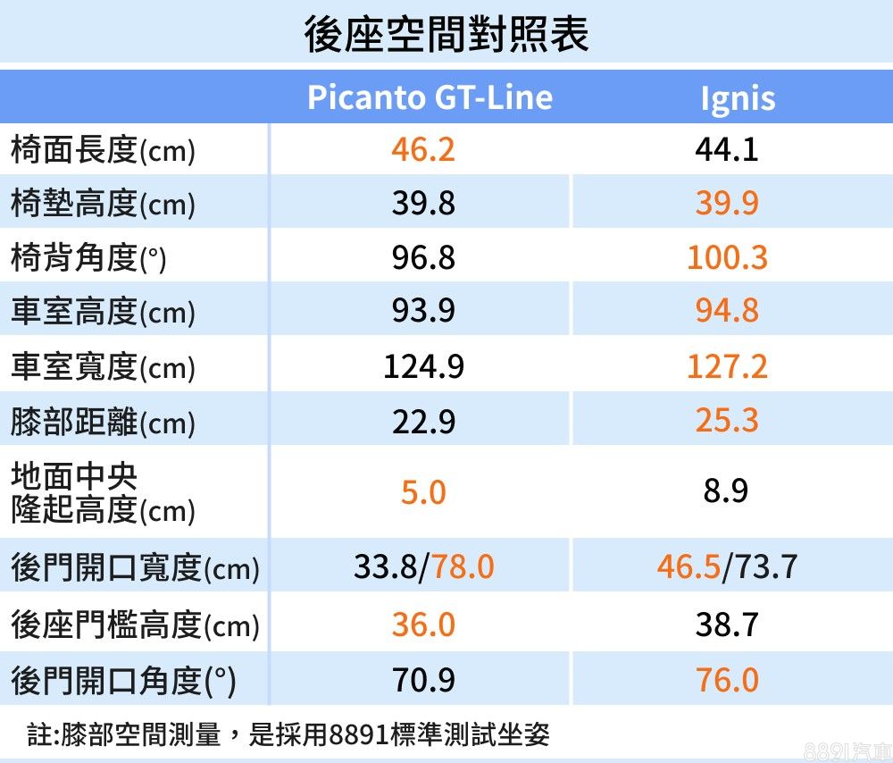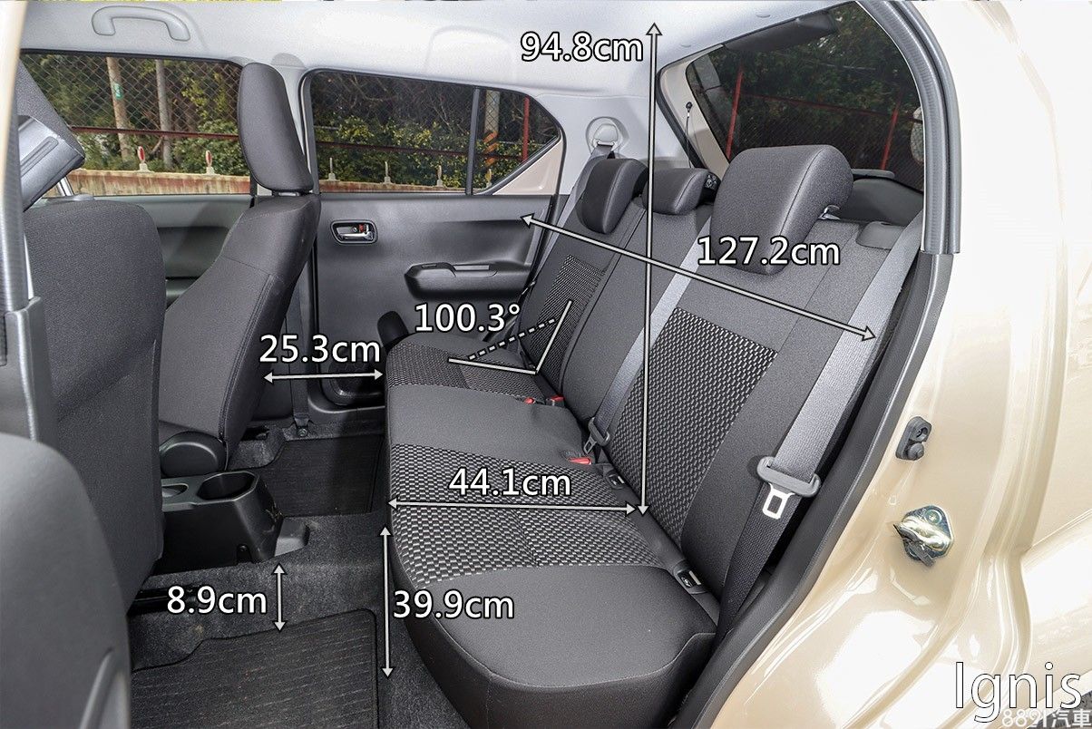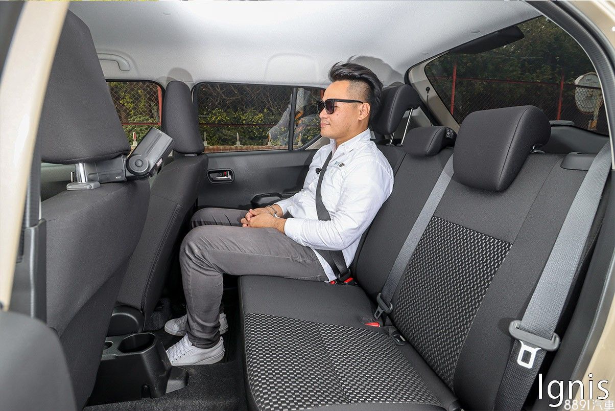 來到後座差異就比較明顯了,Ignis的膝部、頭部數據更出色,乘坐空間感比對手開闊,另一點則是椅背角度更斜,坐起來放鬆自在。