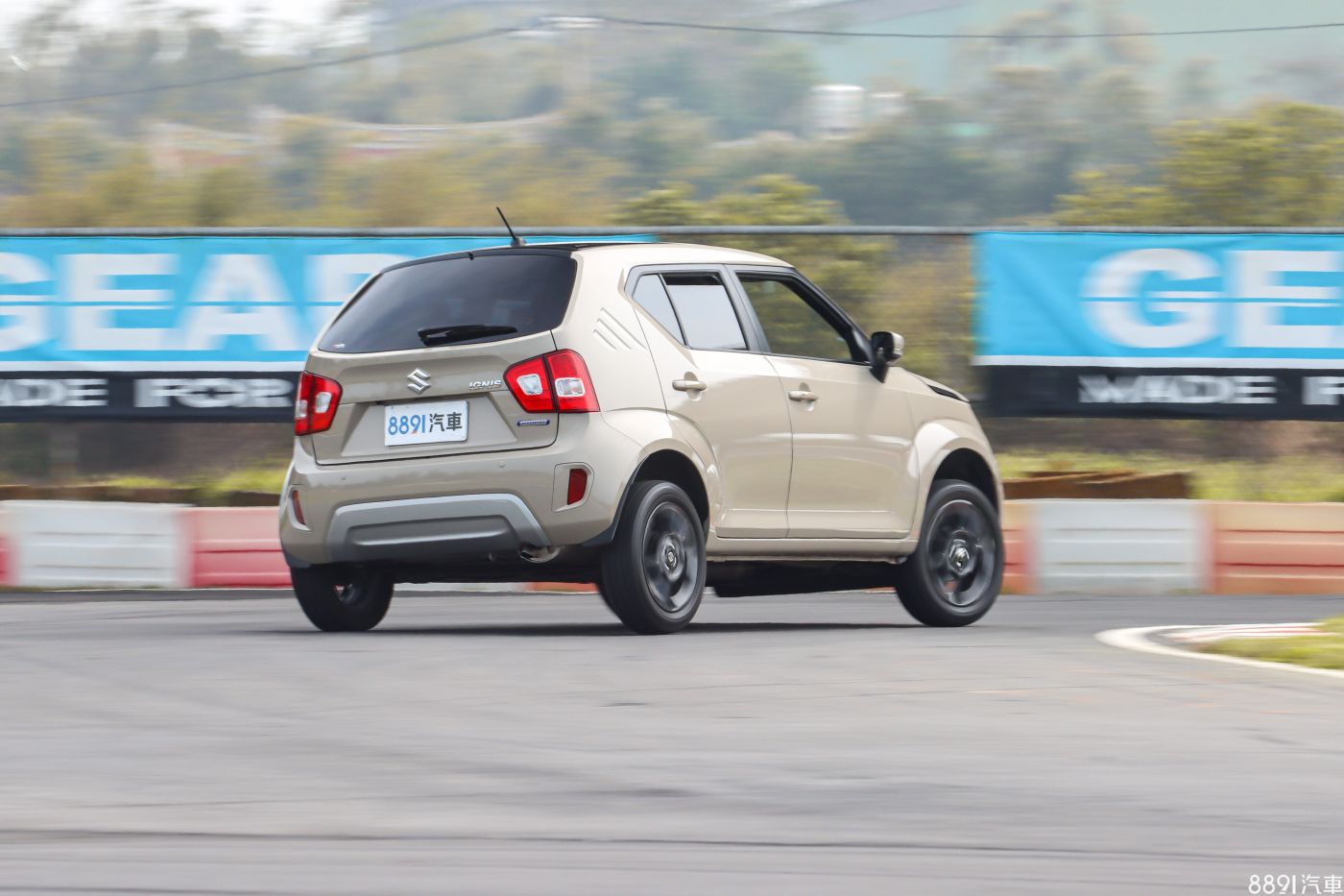 Ignis車重比對手輕了100kg,絕對有助於讓動態反應更輕巧,不過輪胎175/60R16比Picanto GT-Line的195/45R16明顯較窄,採用的普利司通EP150也同樣訴求節能,實際側向抓地力比起Picanto GT-Line更為不足,甚至出彎時內側輪也會有明顯空轉、造成動力流失;另外,懸吊在激烈操駕下,通過路緣石的吸震性也無對手好,難免影響車身動態。