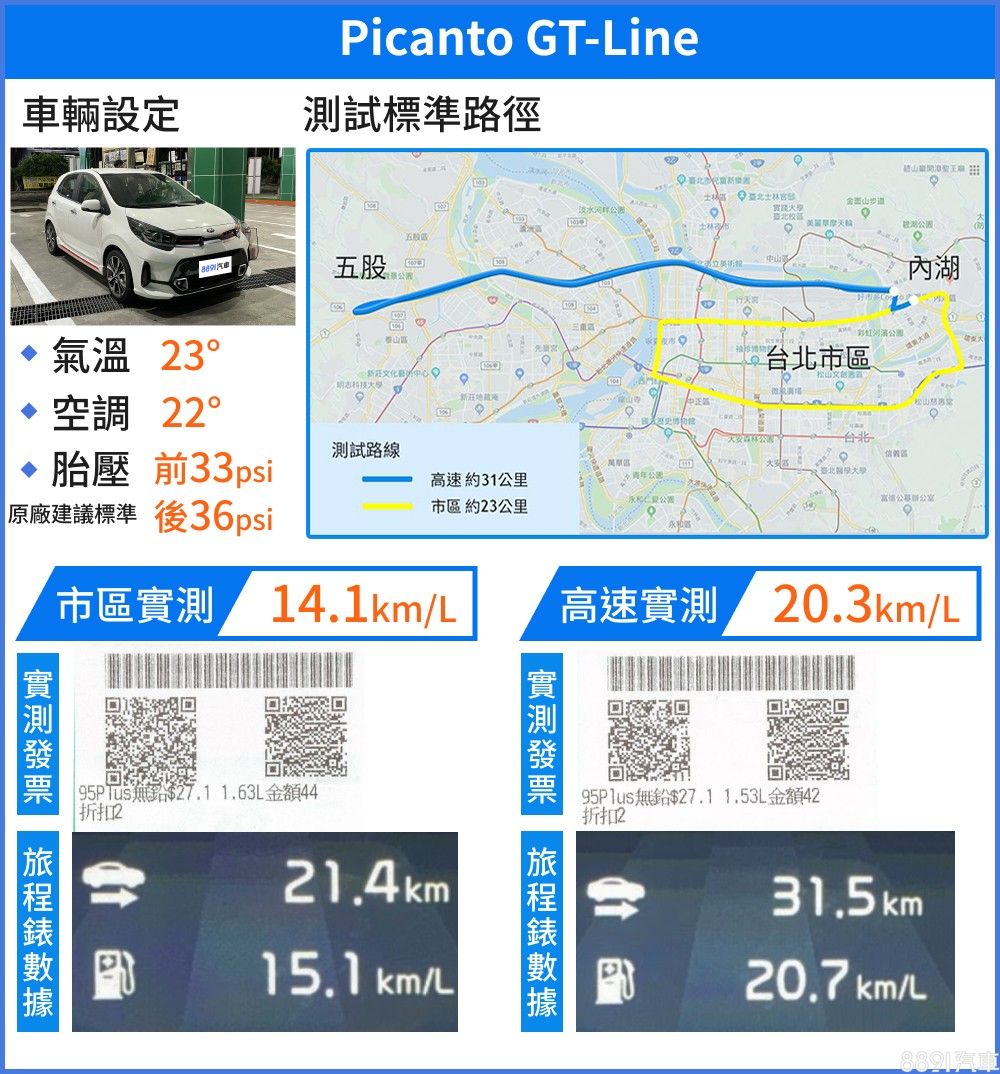Picanto沒什麼省油新科技,但靠著每每停車怠速熄火都能做動,也能繳出符合水準的14.1km/L市區油耗,高速表現倒是令人意外,在齒比偏高、110km/h巡航轉速達3000rpm情況下,竟還能有20.3km/L的實測油耗表現,顯見單離合自手排變速箱,動力流失少、效率高,也有助於油耗表現。