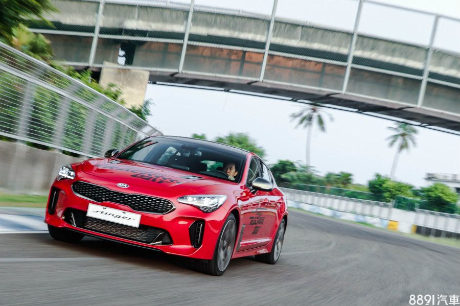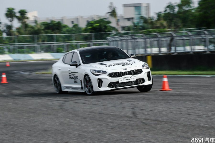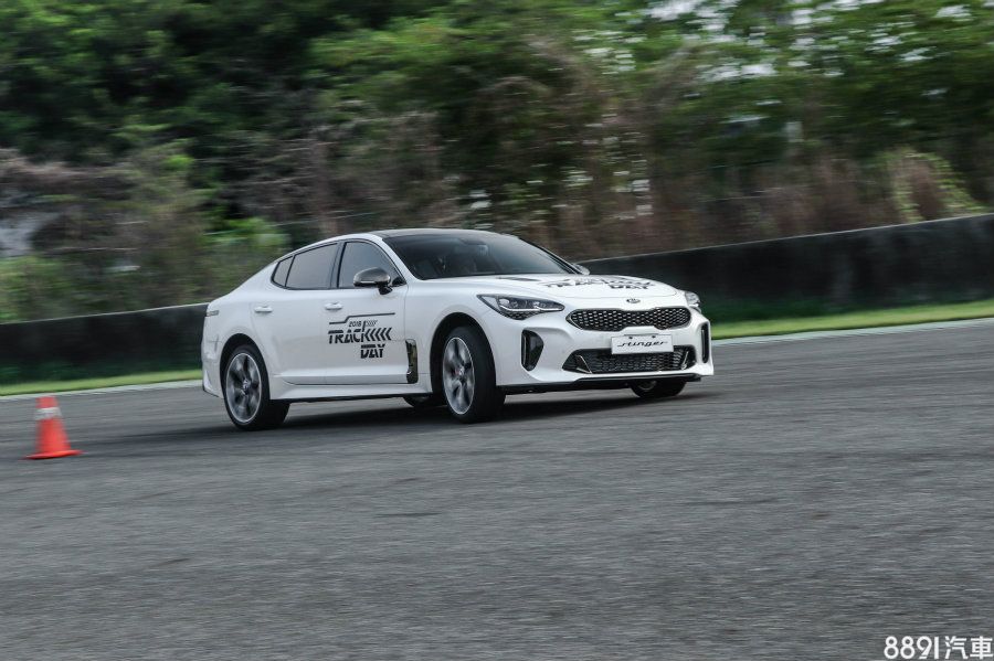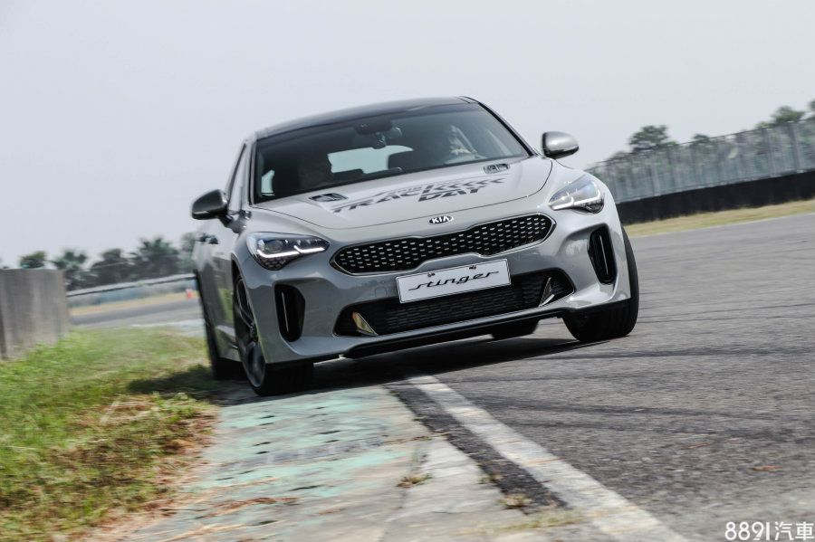 在酷熱的南台灣陽光下,原廠雖然已灑水企圖營造濕滑感受,但整體賽道卻仍屬於半乾狀態,以略高於極限的車速入彎,Stinger初期呈現轉向不足、透過略收油門甚至輕點煞車,Stinger AWD系統隨即恢復前軸抓地力,快速收攏行車線帶領車身往出彎點推進,此時若刻意大腳油門破壞動態平衡,車尾蠢蠢欲動的特性著實頗具樂趣。