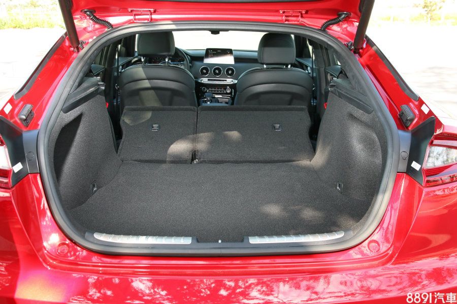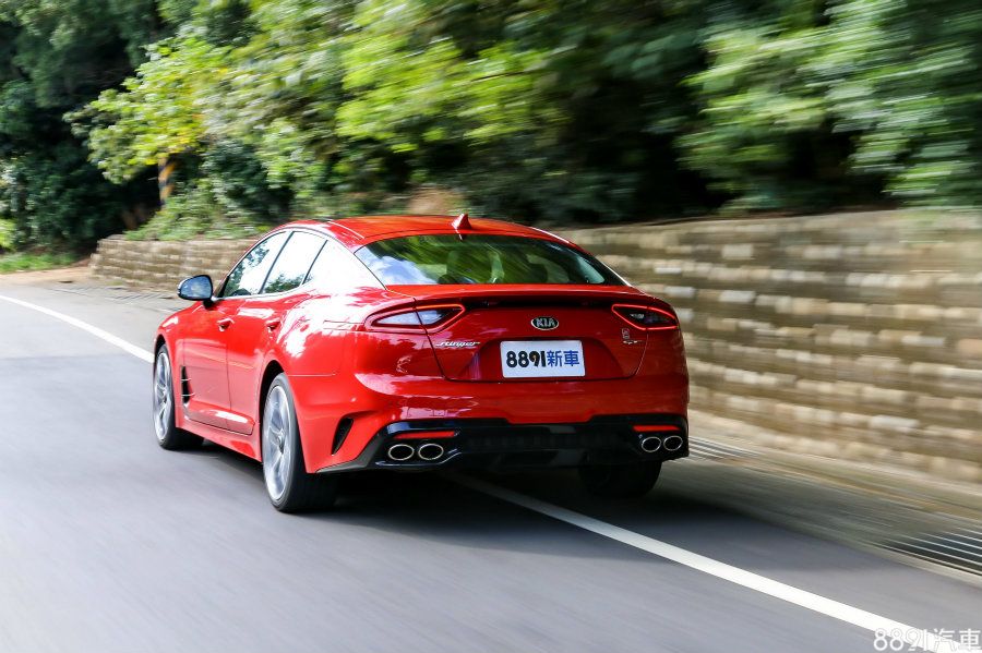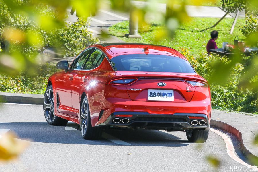 Fastback斜背造型除了運動感,Stinger的後檔風玻璃連著行李廂一同開啟,更大的開口利於放置行李,美型又實用,加上下方的四出尾管與擾流設計,很有歐系跑旅的「Fu」。