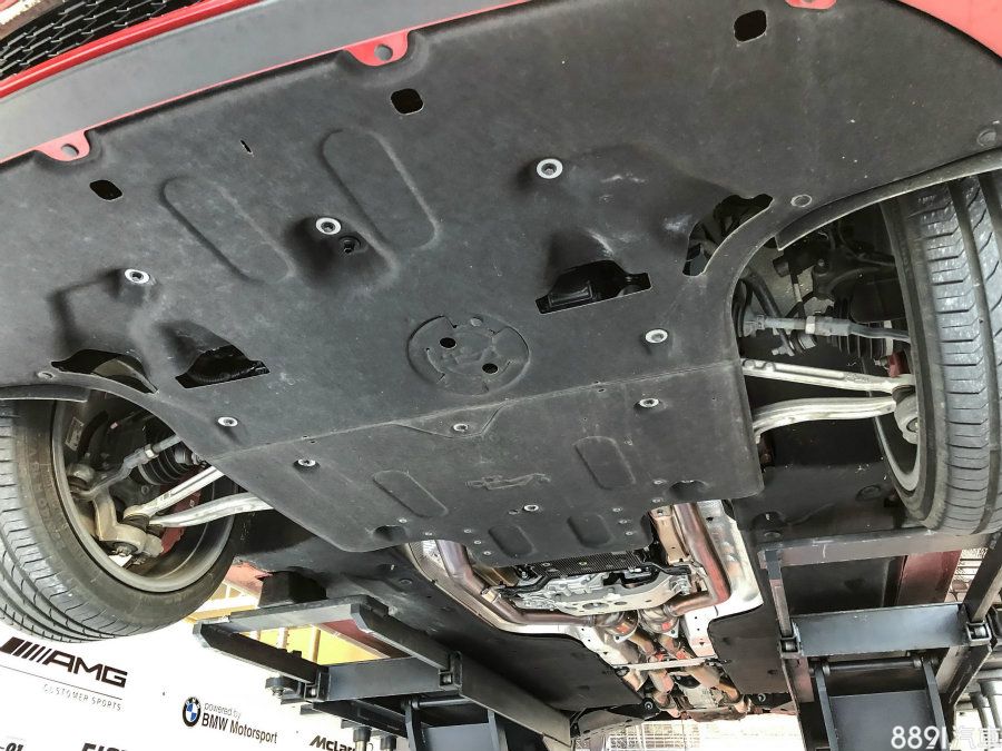 從車頭方向看去,前懸吊支臂採鋁合金材質,許多歐系高級車也是同等設定,另外,引擎室下方的包覆完整,後頭除了要散熱的排氣管中段,兩側也都有護板覆蓋,平整化表現完整,這都和高速行駛的寧靜度與穩定性有關。