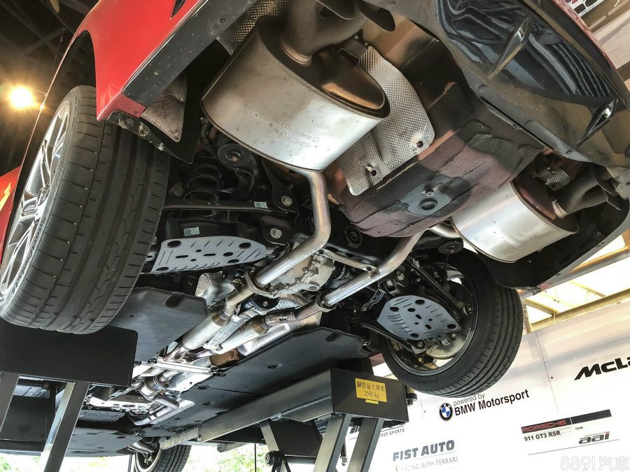 由於Stinger GT是V6雙渦輪設計,排氣管徑從Downpipe之後就是左右獨立走向,有助於排氣效率,至於後懸吊的支臂則是傳統的鑄鐵材質,不像前懸吊是質量較輕的鋁合金。