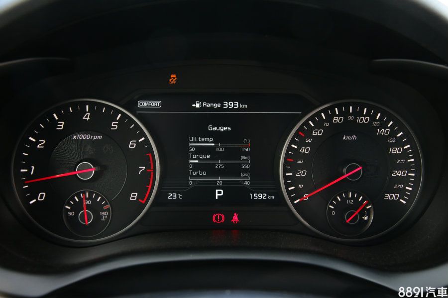 時速錶底劃至300km/h,能否達陣是一回事,至少看來夠熱血,中央的7吋資訊幕可以顯示動力輸出、G值、單圈時間等資訊,缺點則是沒有中文介面。