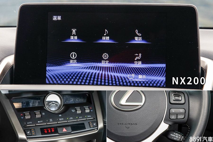 菁英Plus版搭載8吋車載系統,搭配Lexus獨創的Remote Touch操作介面,用起來有點像滑鼠,還算好上手,但可惜的是螢幕並無觸控功能,音響的喇叭數量為8支,此部分略遜於頂規CX-5。本次兩車皆有雙區恆溫空調系統,差異在於NX200配置加熱座椅,CX-5則為通風,理論上以國內氣候而言,消暑的通風功能實用性更高。主動安全方面,DRCC跟車作動範圍達0~210km/h,於50km/h以上可使用車道維持輔助,使用上需要從方向盤右側按鍵與撥桿操作,使用上有些不夠簡便。