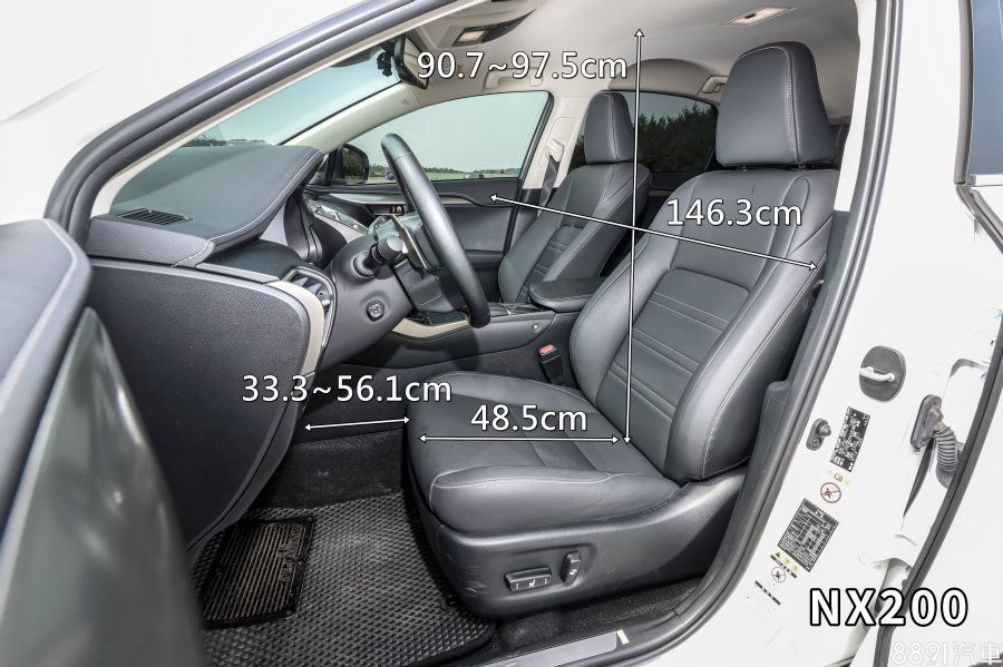 NX200的椅型服貼,泡棉設定柔軟,雖然包覆材質並非真皮,但實際觸感還不差,沒有廉價感,舒適性到位,而前座均提供8向電動調整與加熱功能,但是沒有記憶和可調整腰靠,要NX300以上才配備,這部分流露一些入門車型的閹割感。
