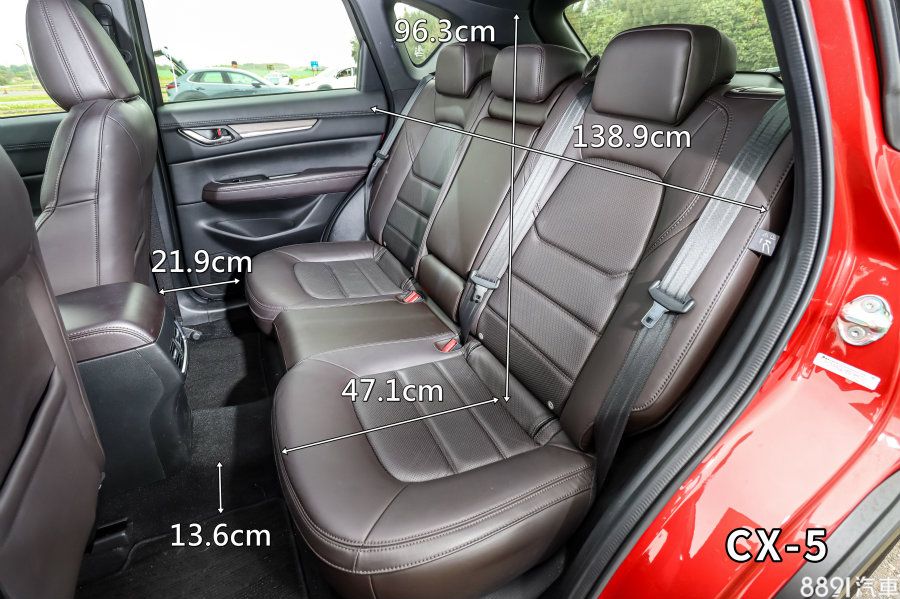 因為較NX200稍低的坐點以及偏軟的泡棉設定,CX-5有陷入座椅中的感受,椅背角度具備24~28度的可調範圍,不會過於挺直,椅墊長度也夠,缺點還是偏小的膝部空間,加上地板中央的隆起造型,影響整體的舒適性。