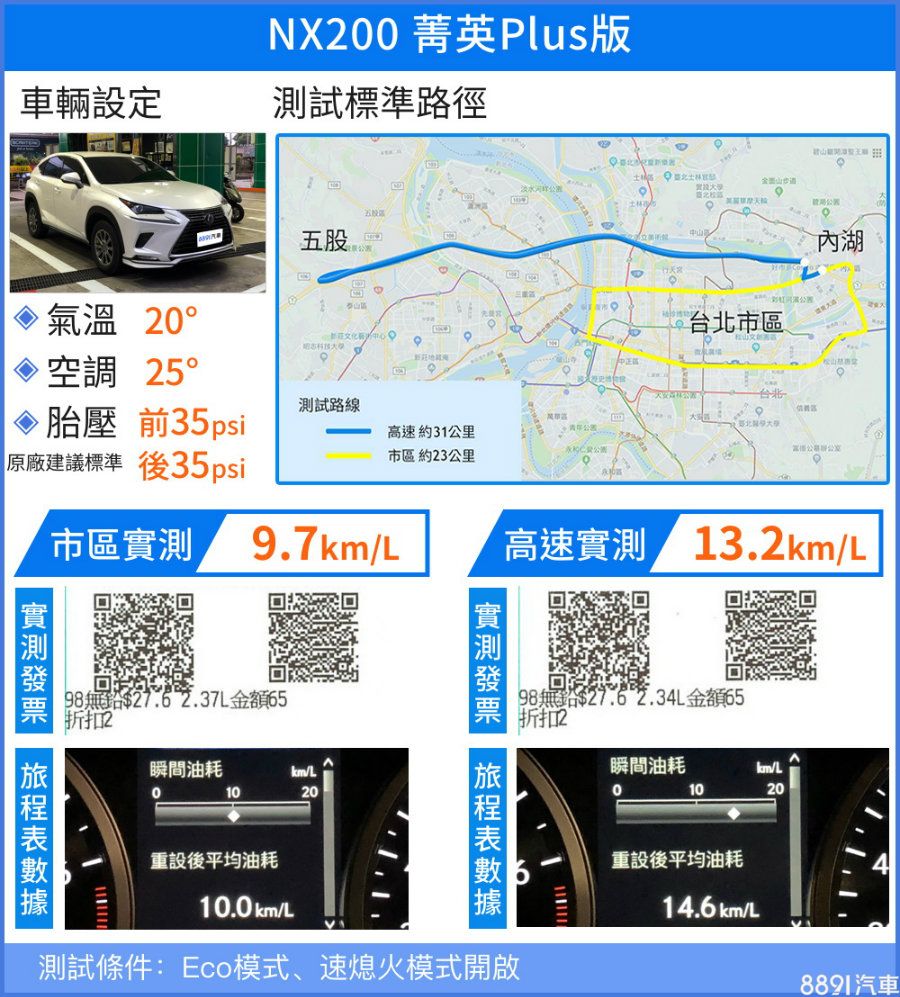 對NX200不必有性能方面的遐想,150hp動力就是代步剛剛好的程度,倒是CVT變速箱調校出色,起步反應輕快,市區順順地跟上車流不是太大問題;NX200具備三種行車模式,Eco過於溫順,實在不好用,Sport則幫助有限,畢竟動力真的不大,預設的Nomal最好開。