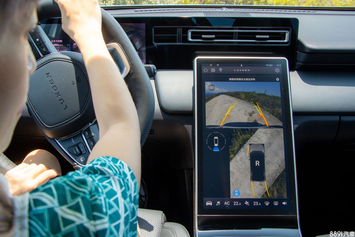 幫新車喬位置拍照,也是工作日常,此時亮點版標配的360度環景,支援切換多種視角,以及底盤透視功能,大螢幕搭配很有水準的解析度,預防車輛因為不熟悉路況而受到損害!