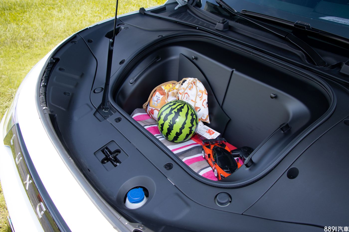 車頭也有置物空間,雖然不算太大,但用來放小孩玩具還是綽綽有餘的。