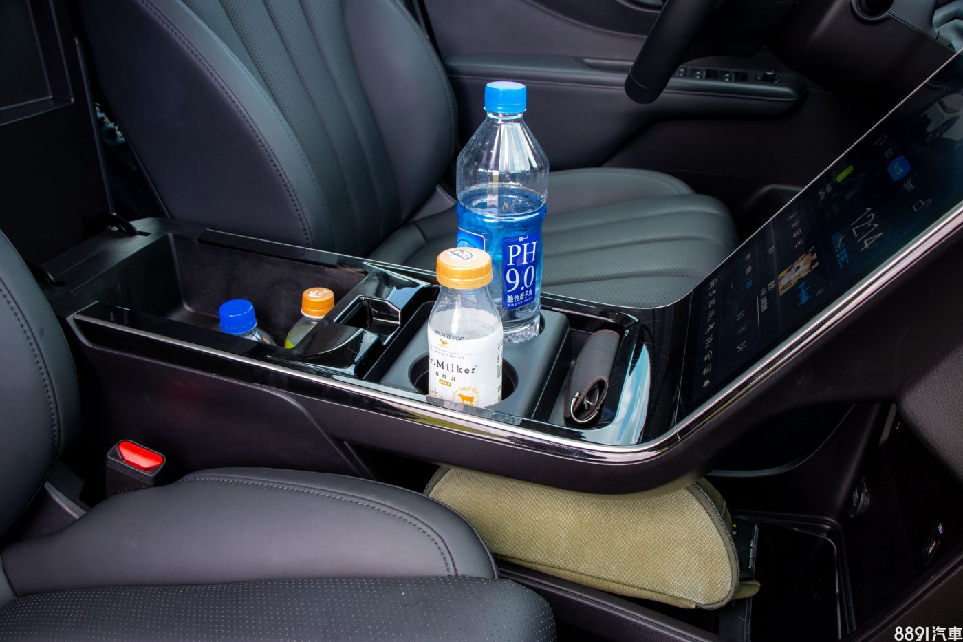 車室置物規劃多絕對是優點,除了中央鞍座有2個置杯架,扶手內部空間很大,下方也有置物空間規劃,有地方可以讓我各種放就給讚!