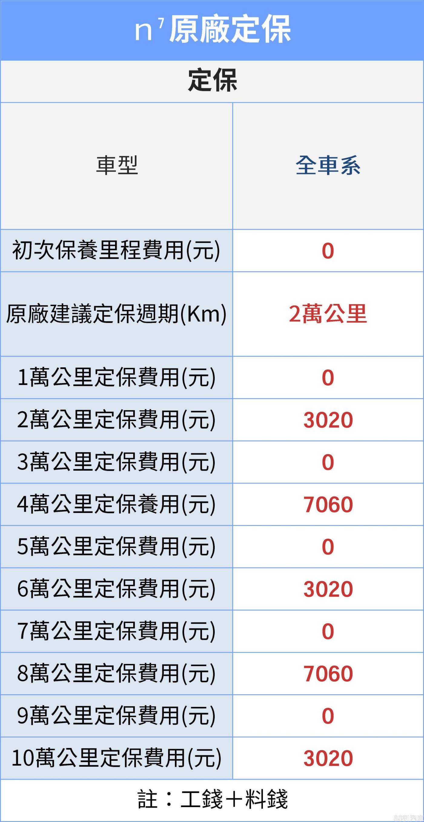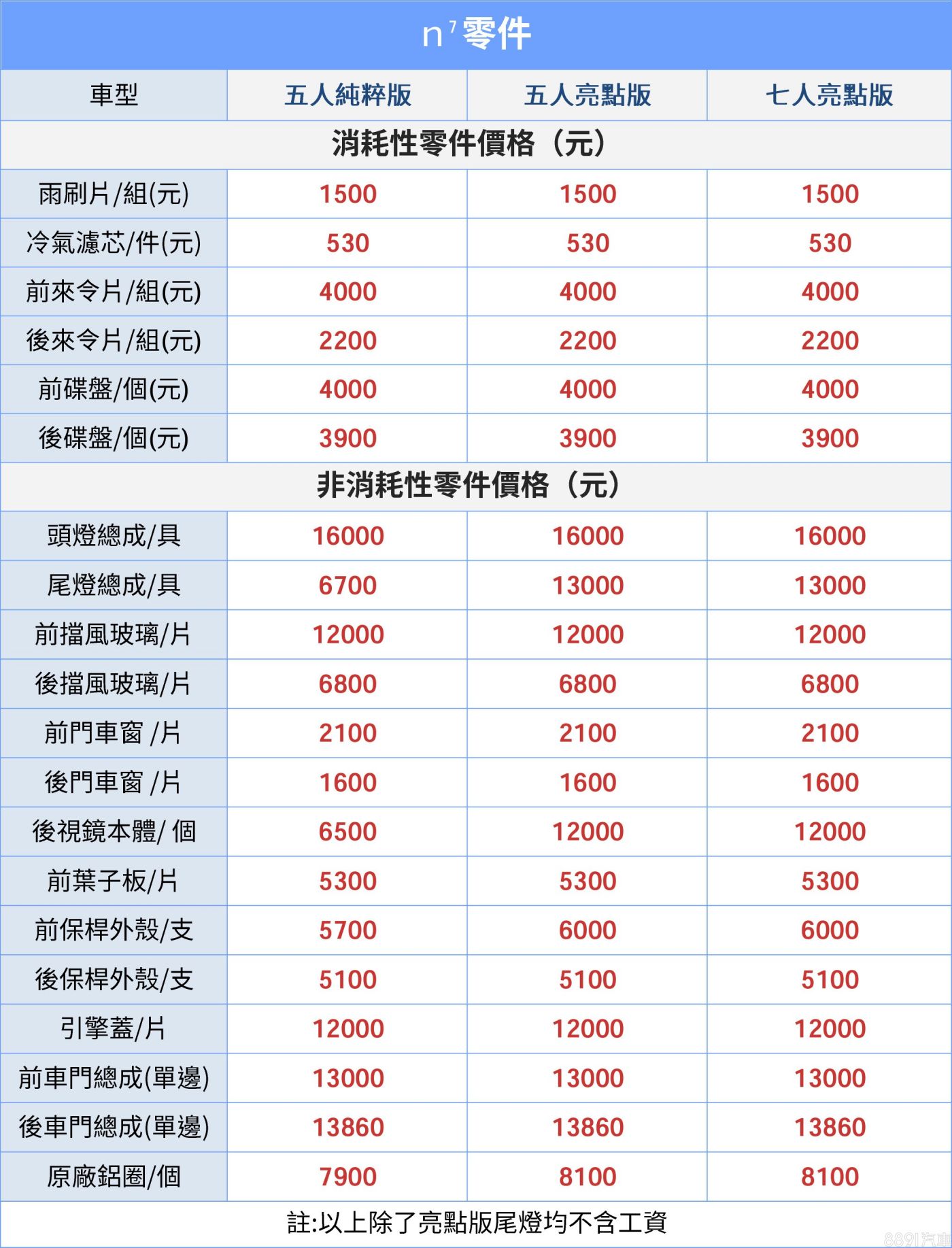 車主們最關心的,應該還是養車花費的部分,這邊也想提一下,n⁷零件價格相比大家熟知的國產中型SUV,其實差不多,均屬合理價位,亮點版由於多了貫穿式尾燈、360度環景的鏡頭,尾燈組、車外後視鏡的價格會明顯高於入門的純粹版。