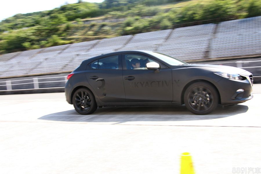 原廠規劃現行Mazda 3、Skyactiv-X原型車,兩款車型供試駕,並皆具備手排、自排兩款變速箱,雖然Skyactiv-X原型車外觀也是現行Mazda 3,但骨子裡卻是下一代車型,車體結構、底盤設計都有明顯不同。不過雖然在試車場,但卻僅用到一小部分賽道,並有陣仗安排,也有前導車帶頭,而整個開車時間加起來頂多20分鐘,以中低速為主,最高速則可拉至140km/h左右,坦白說,體驗有限,只能使出渾身解數了!