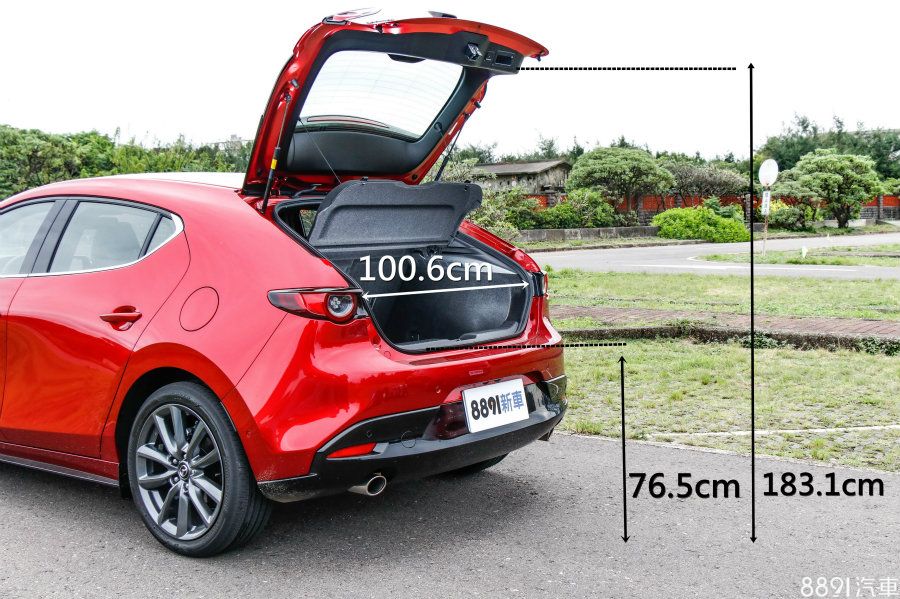 行李廂開口夠大、物品進出容易,傾斜的後檔玻璃讓尾門開啟角度較大,尾門把手離地高來到183.1cm,且無電動尾門設計,身材嬌小的車主關閉尾門稍有難度,且須格外注意地下室限高與管線。