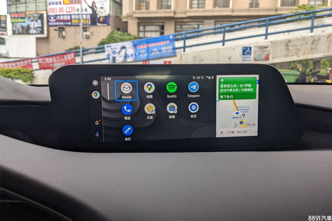 如今Apple CarPlay與Android Auto絕對是不可或缺的一項配備,四代Mazda3使用Android Auto時還可以同時顯示地圖與媒體,相較舊款的只能單一畫面方便許多。
