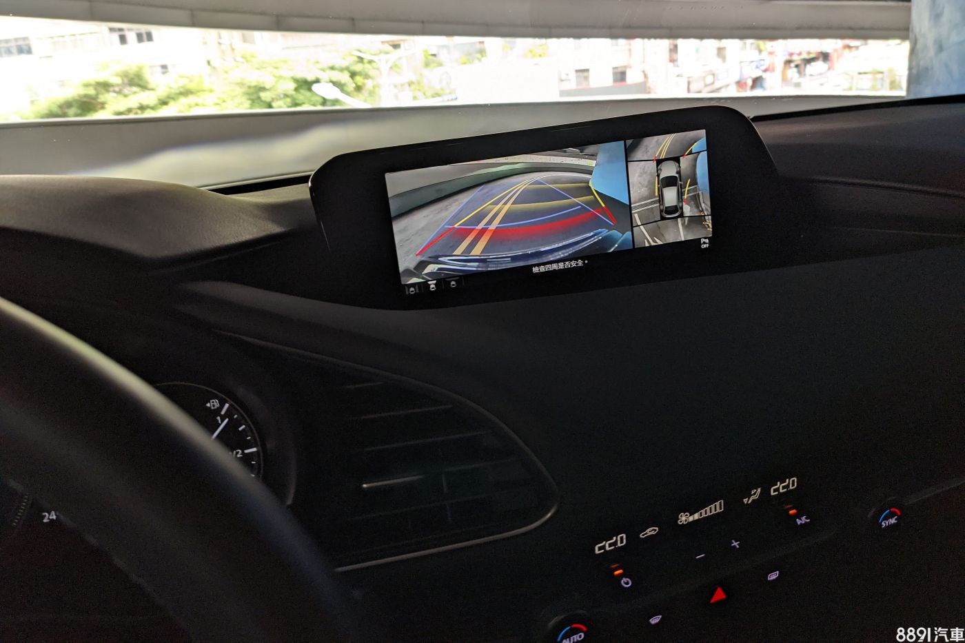 這次的Mazda3也新增了360度環景系統,比起上一代的畫質有著大幅度的進步,對於Mazda3這種車頭較長的設計,進出停車場時使用環景也變得更加安全。