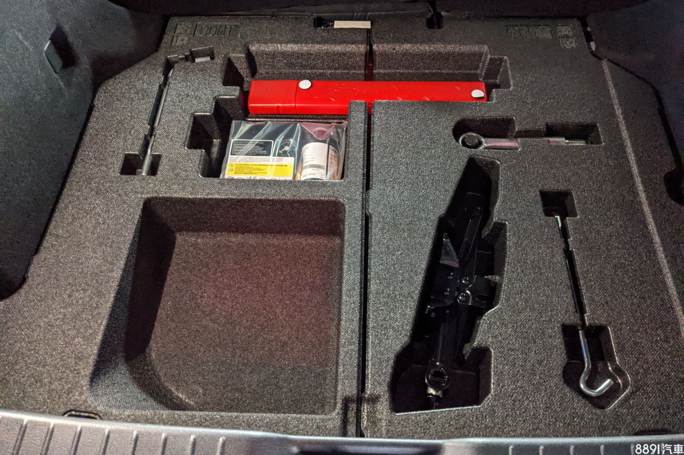 打開下方的底板,左後方有個置物空間,其餘就是基本的救車工具與警示牌收納處,而這次的警示牌也終於有了自己的家,不用像上一代在行李廂內滾來滾去。