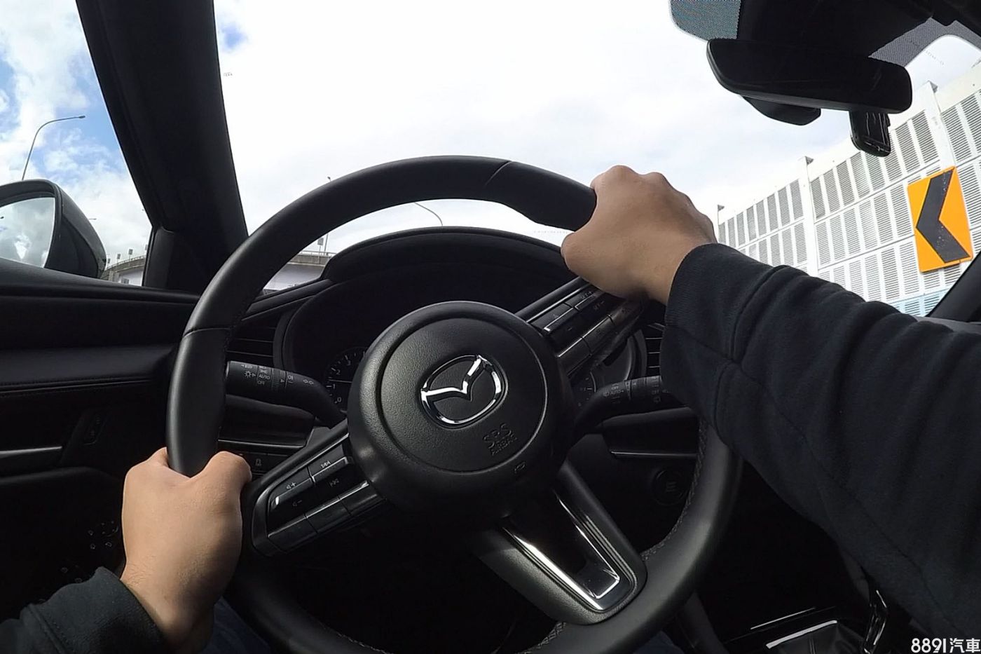 實際駕駛感受的部分,可分為三個部分:首先是在市區小巷穿梭,時常會遇到走走停停,或閃避路邊違停的狀況,四代Mazda3似乎有將車室外的兩個後照鏡向車的兩側延伸,不會有三代車屁股太大而擋住後方視野的問題,加上又有環景系統的幫助,在市區行駛小巷時開起來安心許多,也因後照鏡位置的更動,A柱與後照鏡中間的距離變大,死角也變少。