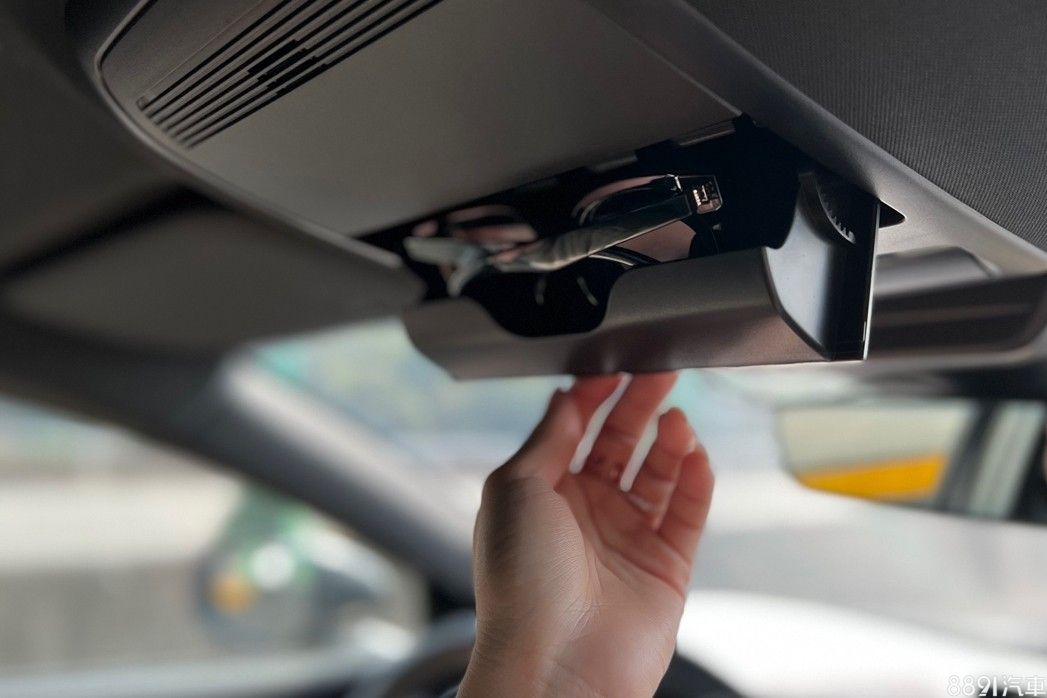 前座上方設有專門擺放眼鏡的空間,對於喜愛佩戴太陽眼鏡的人,這樣的設計真的是非常方便。