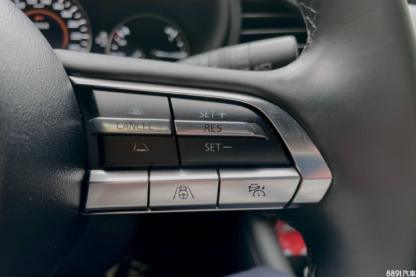 右側就是跟車系統的控制按鍵,包括與前車車距和跟車車速,跟車整體過程加速減速還挺流暢的,前方有車輛切進來太接近的話就會有急減速的情況發生。馬三這套跟車系統是支援跟到停的,但是如果停下來一下子(約5秒以上)前方車輛啟動的話不會自動恢復跟車,駕駛必須踩一下油門或再按一次RES鍵來重新啟動跟車系統,只停5秒以下的話跟車系統就會自動繼續作動。