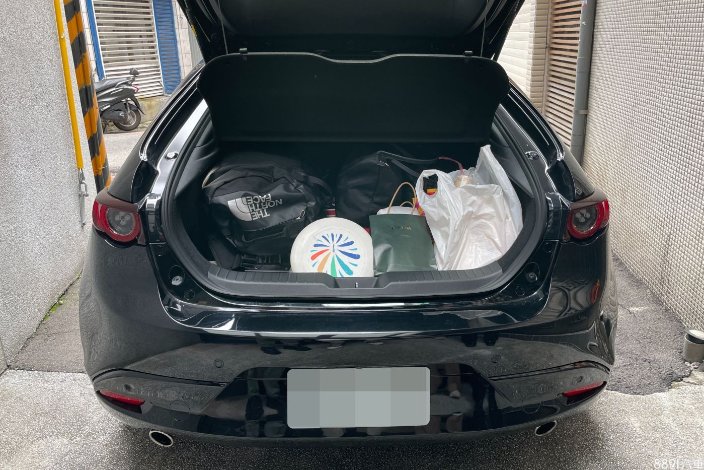 四個人2天1夜的行李塞在後車廂算是擠得剛剛好,還包含一些露營用具,因為是懶人露營所以就是一些鍋碗瓢盆、摺疊椅、卡式爐等等...去露營時也剛好測試一下在山路上的性能,滿載加行李之下我跟朋友們都覺得一點也不會虛,換檔邏輯與過彎支撐性也都很棒,完全不用使用換檔撥片。