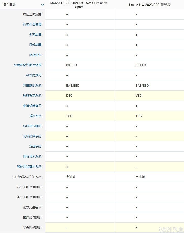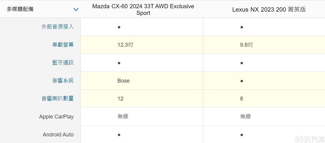 經仔細比對後,我們發現出自平價品牌的CX-60,若是拿來跟正統豪華品牌身分且售價相近的NX 200相比,表現可說是一點也不遜色,如果這台車讓你對Mazda的高級感獲得認同,各方面看起來確實是更划算有料的選擇!建議有興趣的買家,可針對這部分差異視自身需求挑選,若想更瞭解這兩台車的實測數據比較,也可參考站內搶先試駕與比較文章。