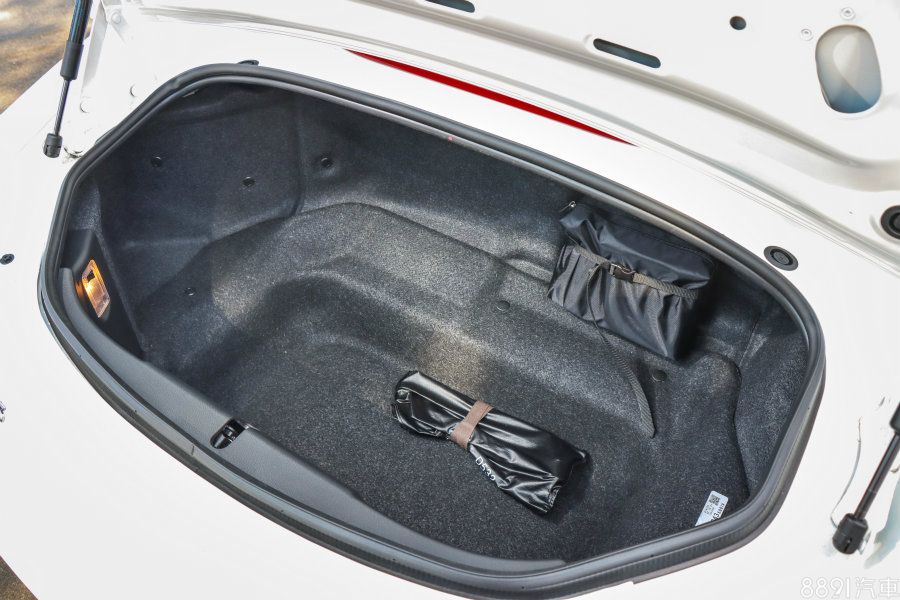MX-5行李廂容積僅有130L,從數據上看似狹小,但內部空間較為方正,足以容納20吋行李箱、一旁還有空間放入軟包等物品,要容納兩人三天兩夜的行李不成問題,實用性算是及格。不過開口較高,取放物品得小心不要敲到烤漆,且底板下方就是排氣管,使得內部溫度較高,若是需要保鮮的食品可得斟酌一下。