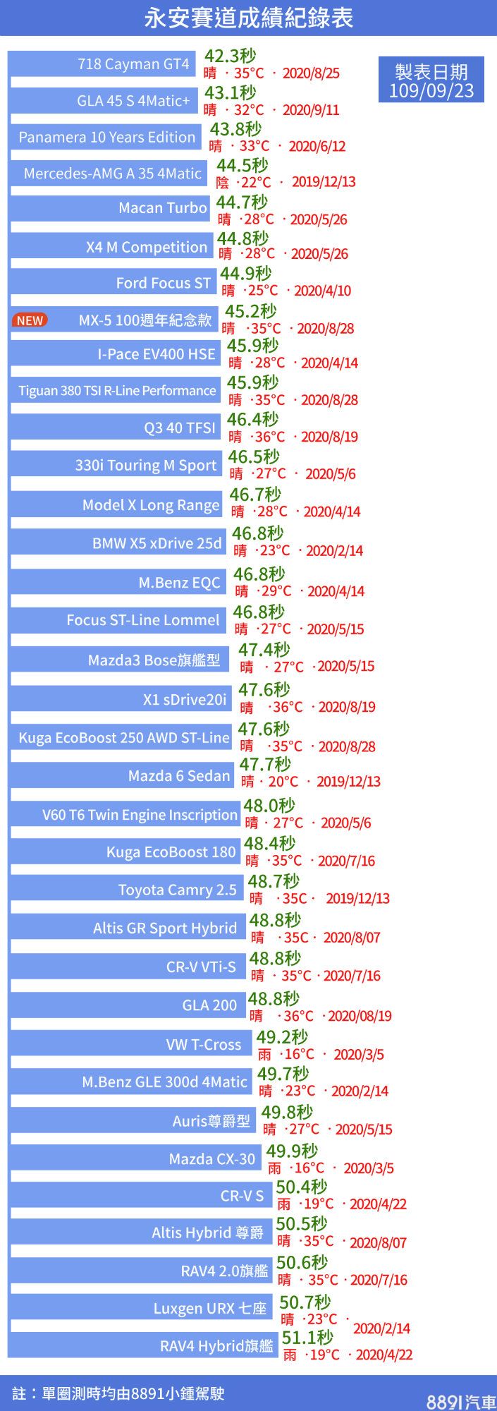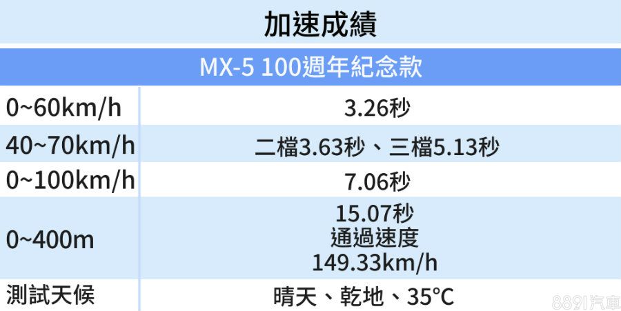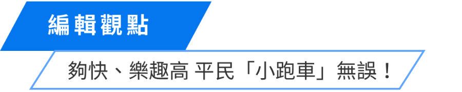 這台車有很多地方能為駕駛帶來樂趣,靈活俐落的操控、敞篷的開闊感、手排的自主性,甚至是上空姿態受到的注目禮,說到拚速度,MX-5的動力數據不是特別出色,但羽量級車重確實帶來很多好處,關於這點,能徹底用盡馬力、逼近車輛極限也是種樂趣,從實測數據來看,對手排夠熟稔的話,0~100km/h也有6秒台表現,並繳出優秀的賽道成績,跑在前頭的都是動力大上不只一截的車款,底盤能耐值得受到肯定,不單只是重視顏值的敞篷車,也是又快又好玩的「小跑車」!